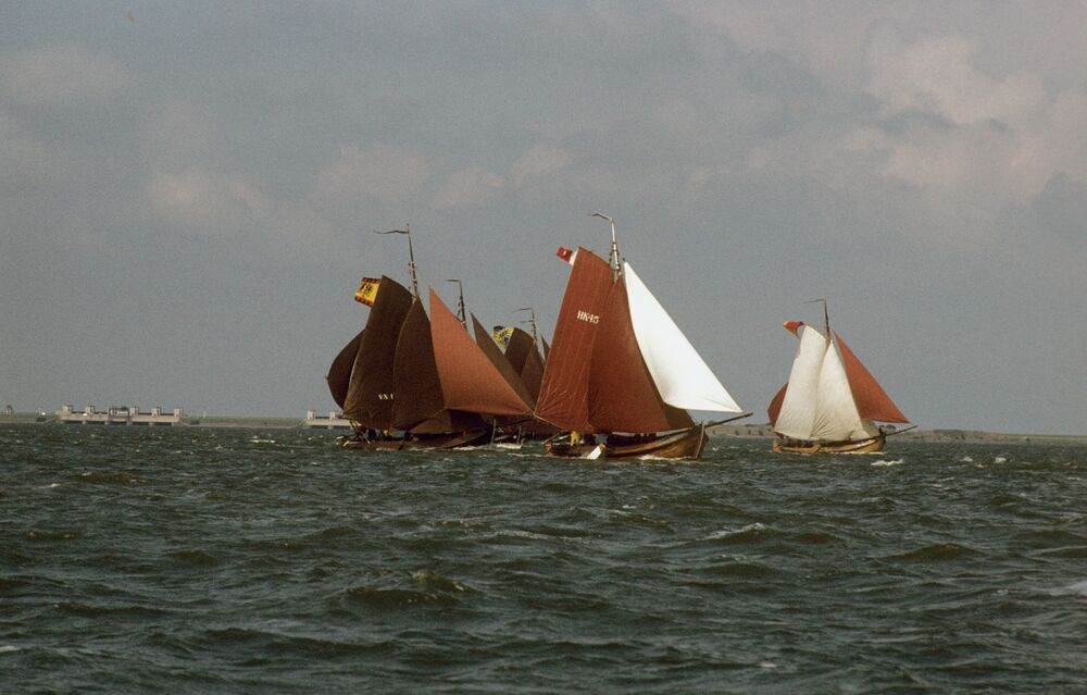 Meerdere botters, waaronder de HK 45, op het IJsselmeer