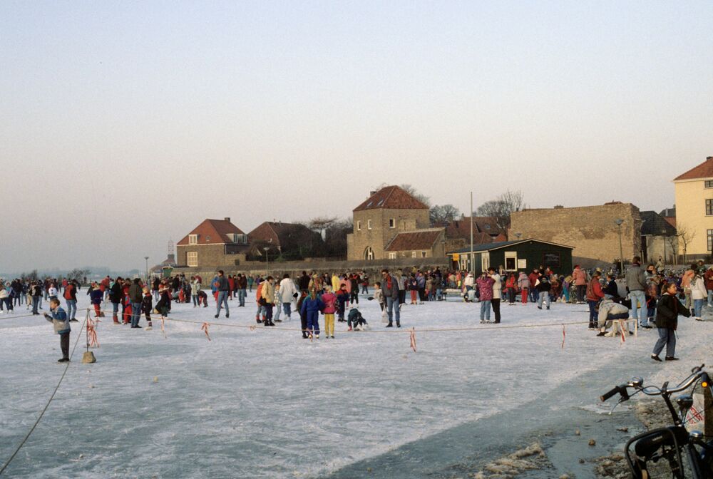 Schaatsers op de ijsbaan van IJsclub Vol Moed