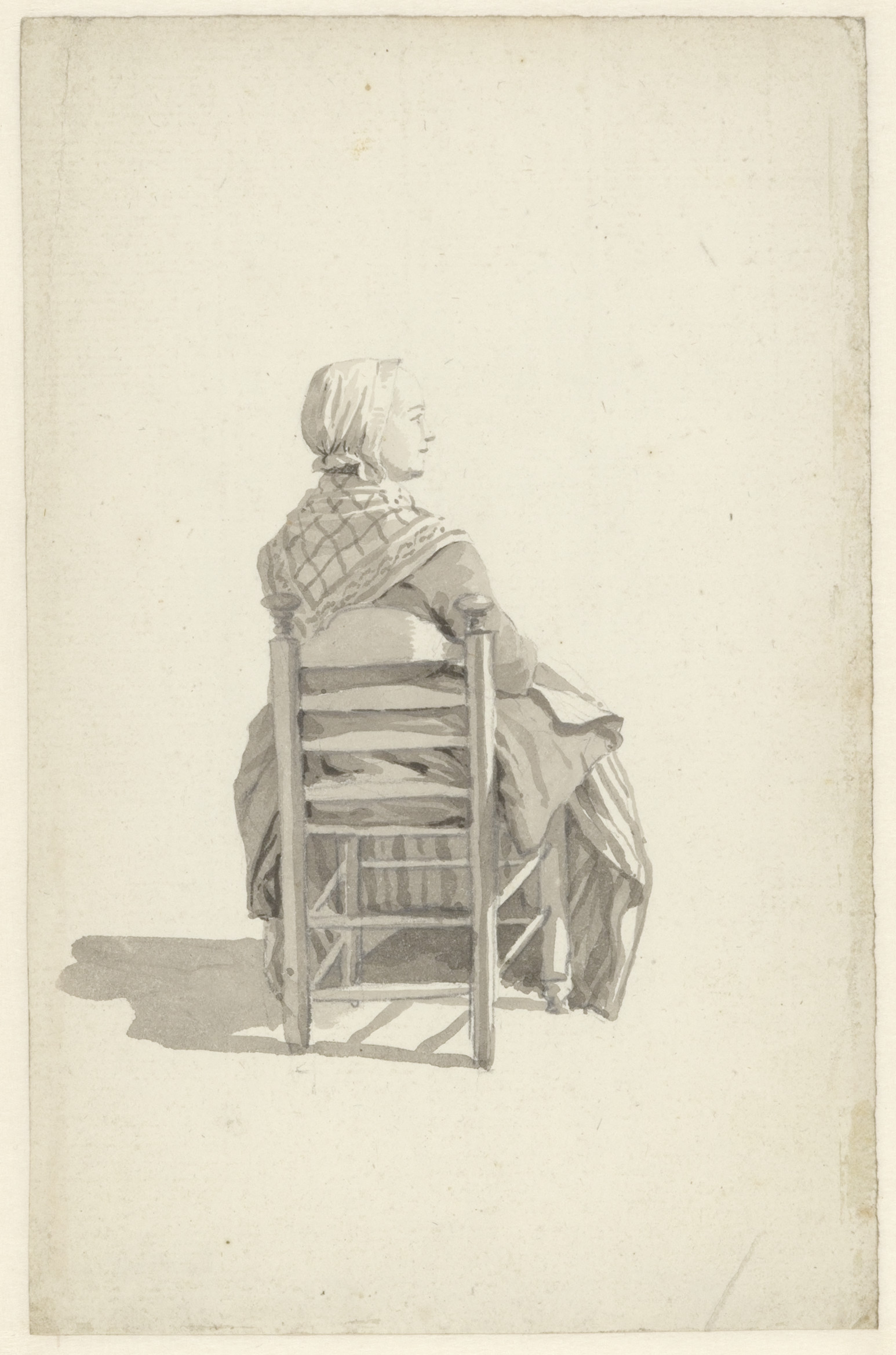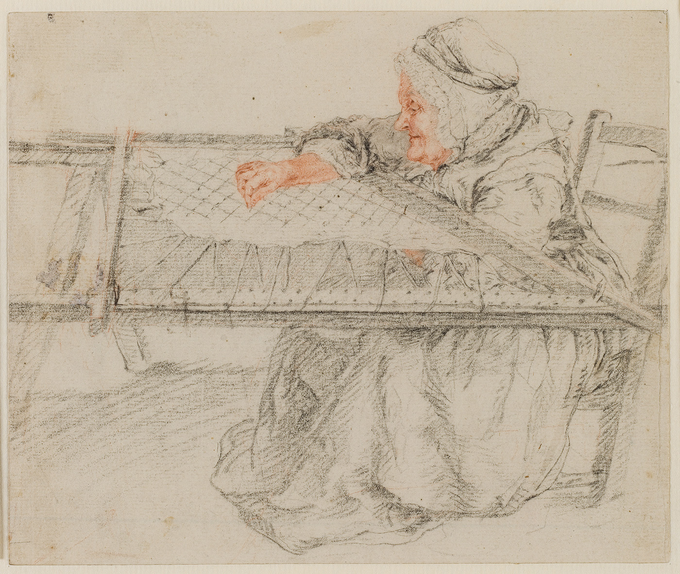 Zittende bordurende dame
