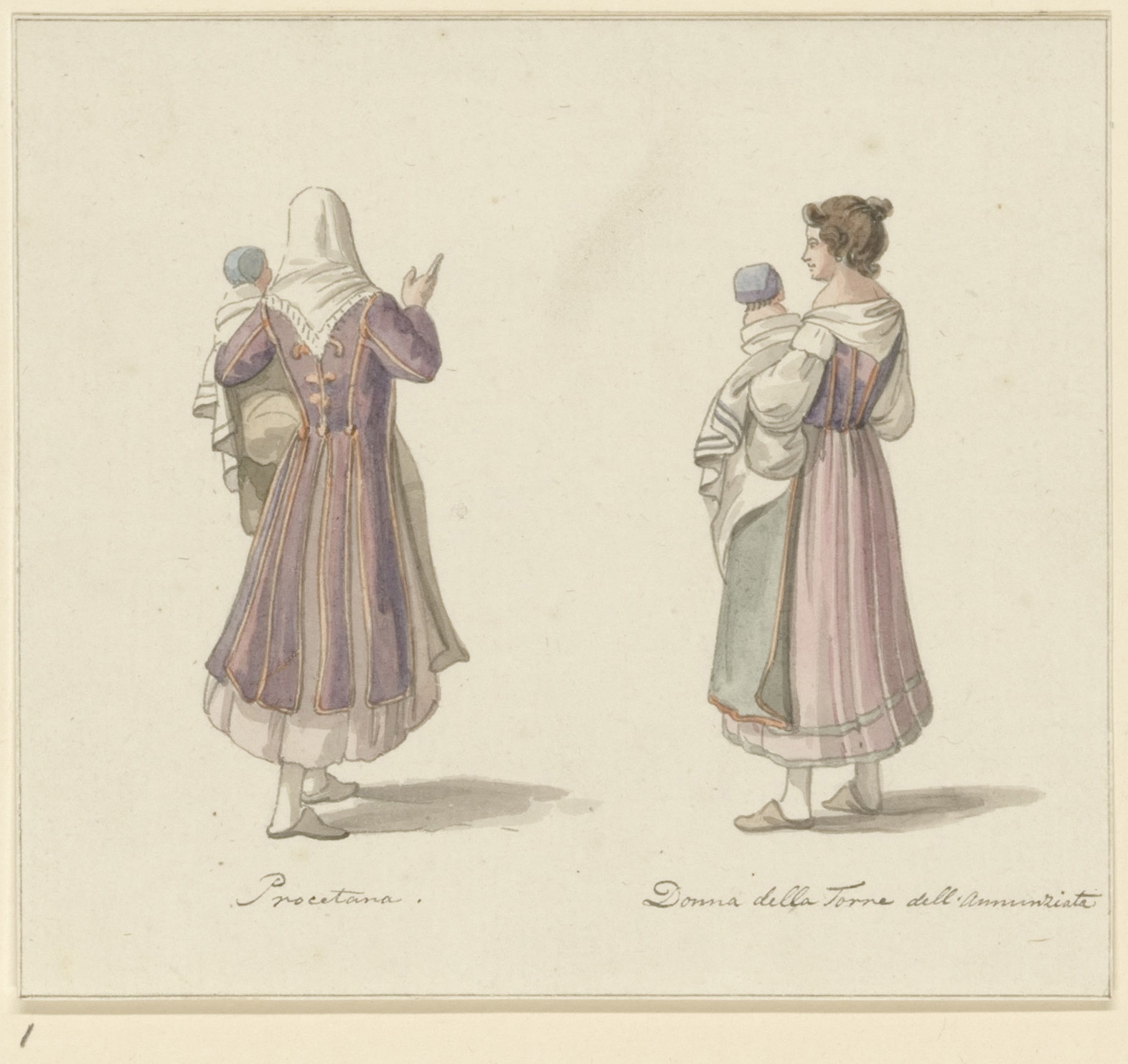 Italiaansche costumen: 'Donna di Mergellina', 'Chiaesa'