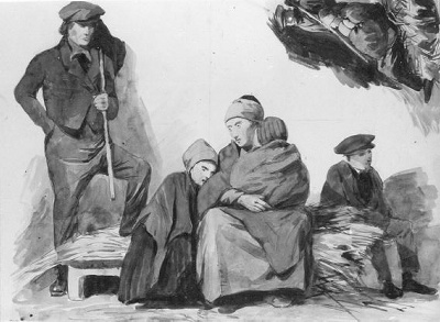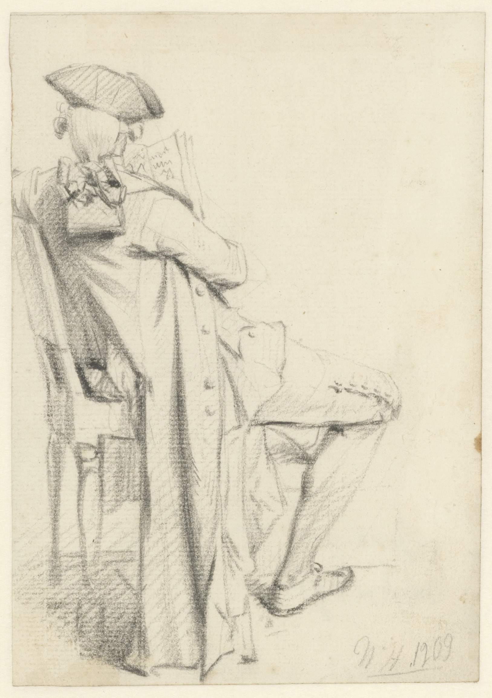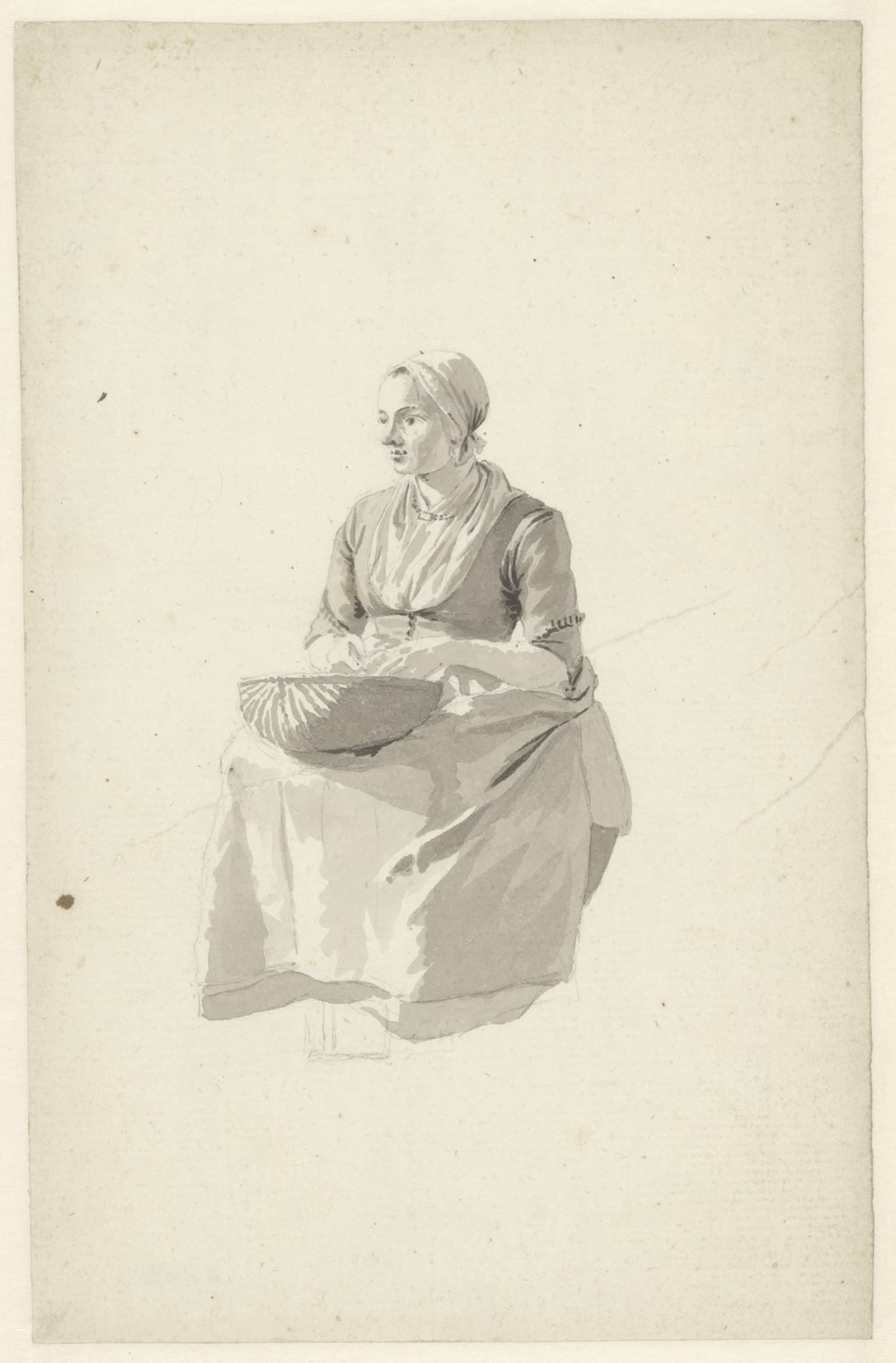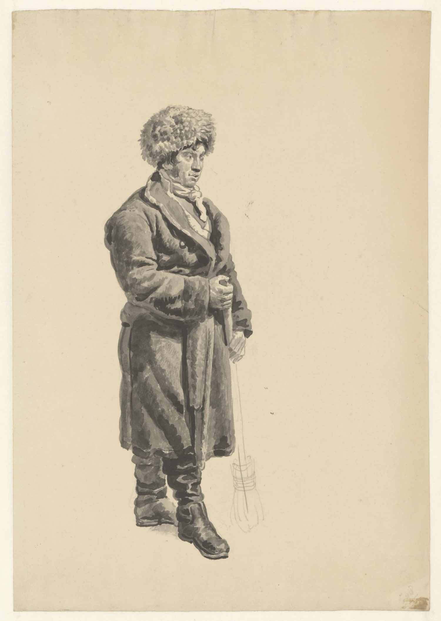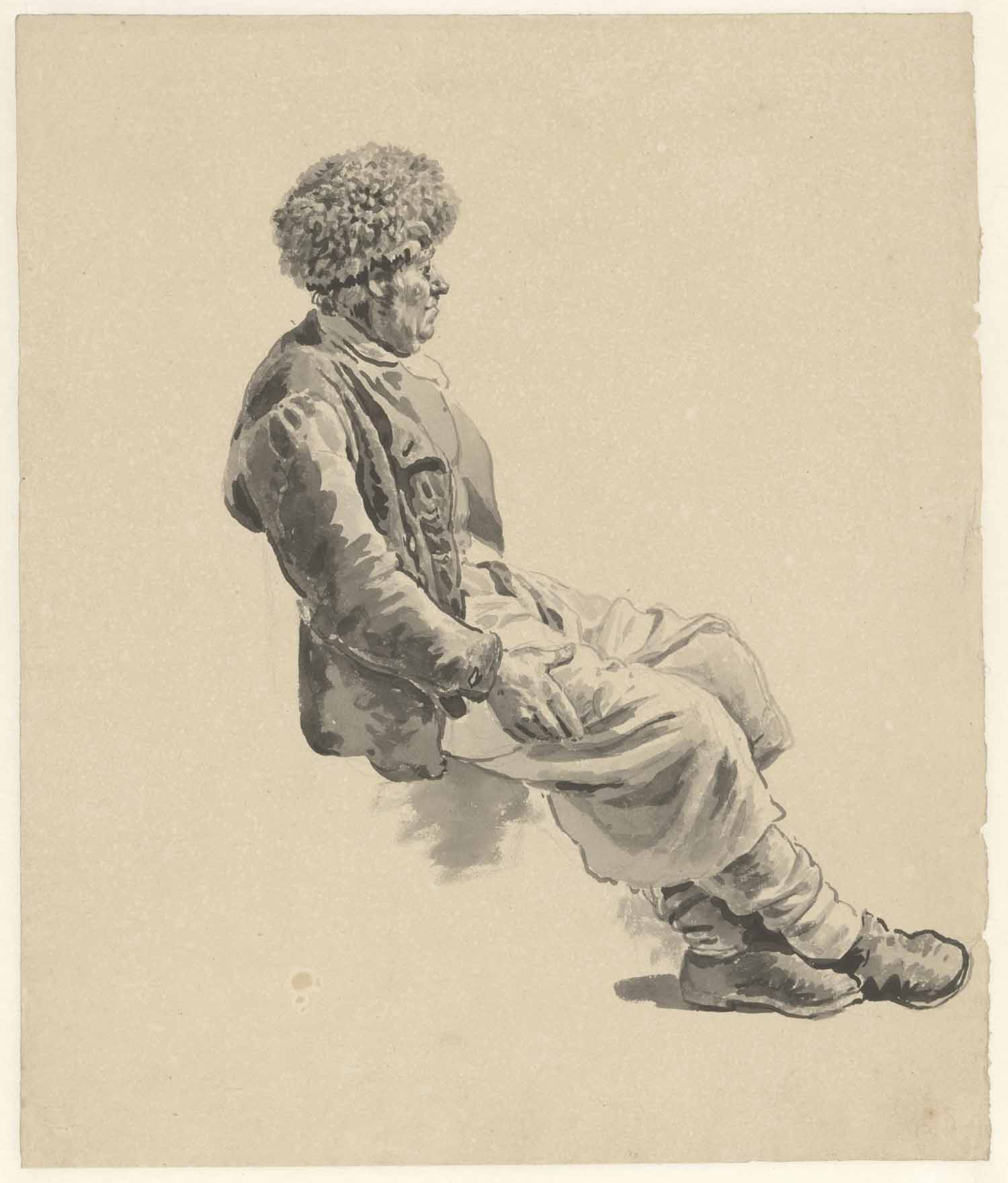 Zittende boer met bonten muts