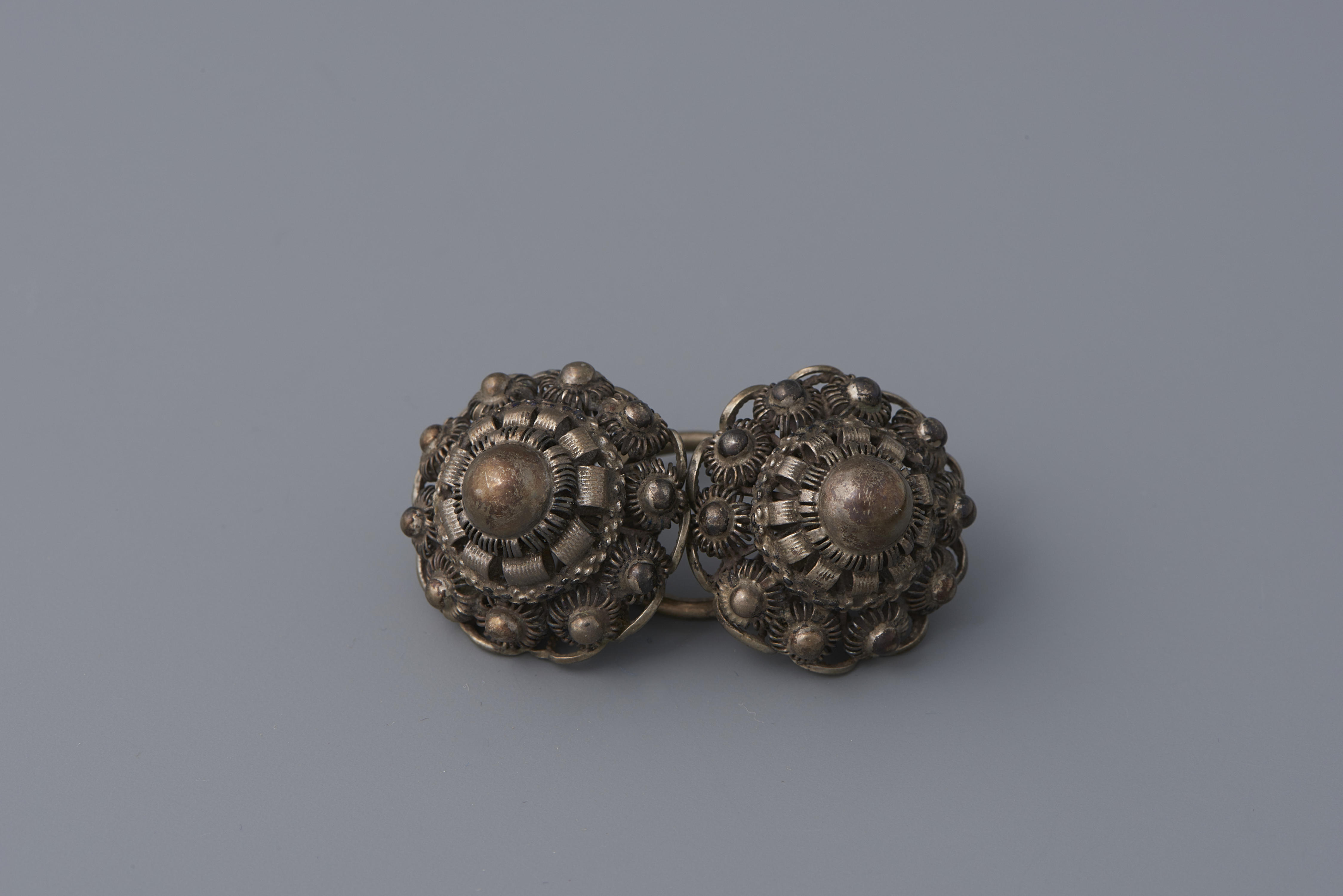 Paar zilveren keelknopen, Walcheren, 1890–1900