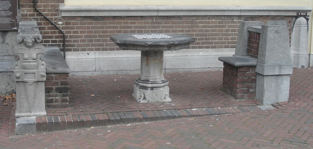 stenen gotische tafel ingelegd met een schaakbord, d...