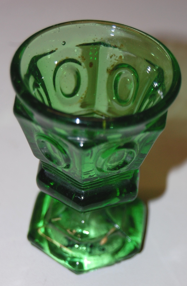 Groen drinkglas op zeskantige voet, zes vlakjes met ...