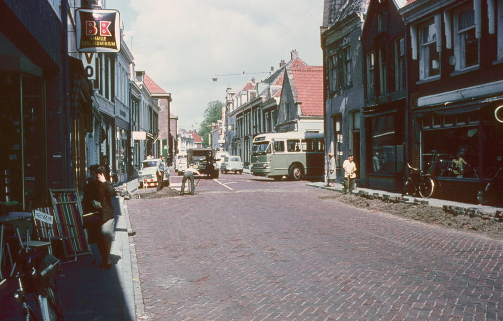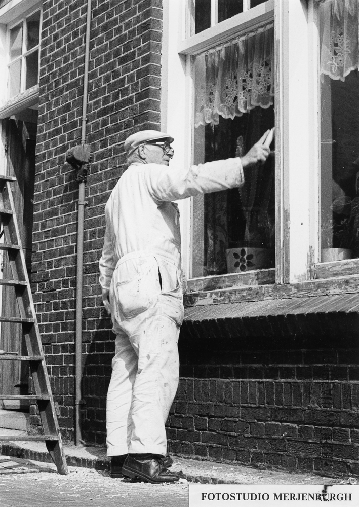 Schilder Van Beek aan het werk in de Doelenstraat