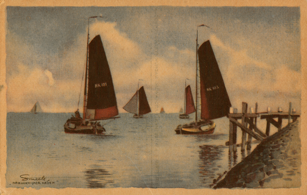 Prentbriefkaart, getiteld 'Harderwijker haven'