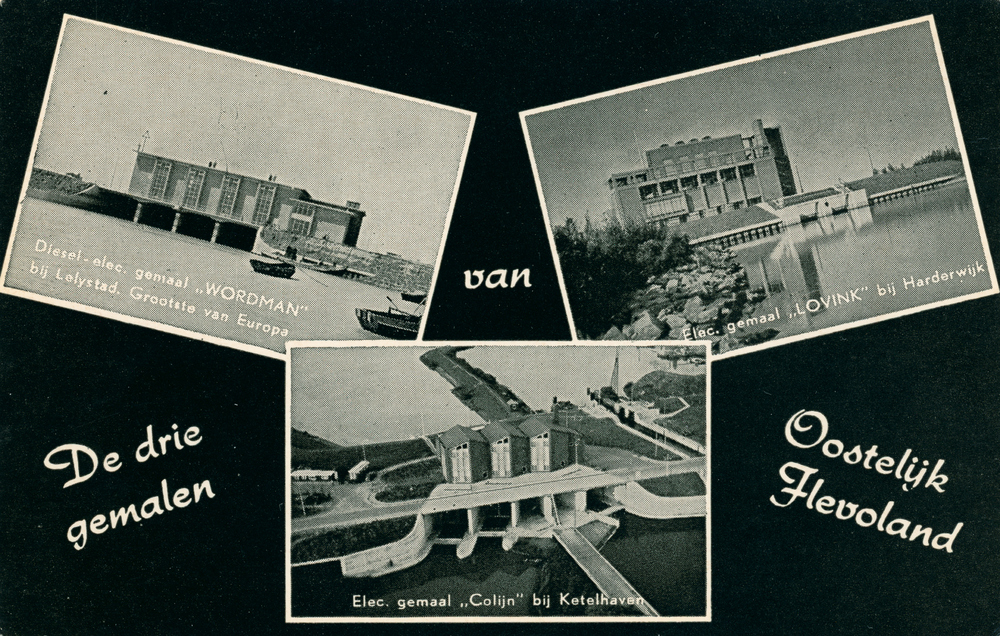 Prentbriefkaart, getiteld 'De drie gemalen van Ooste...