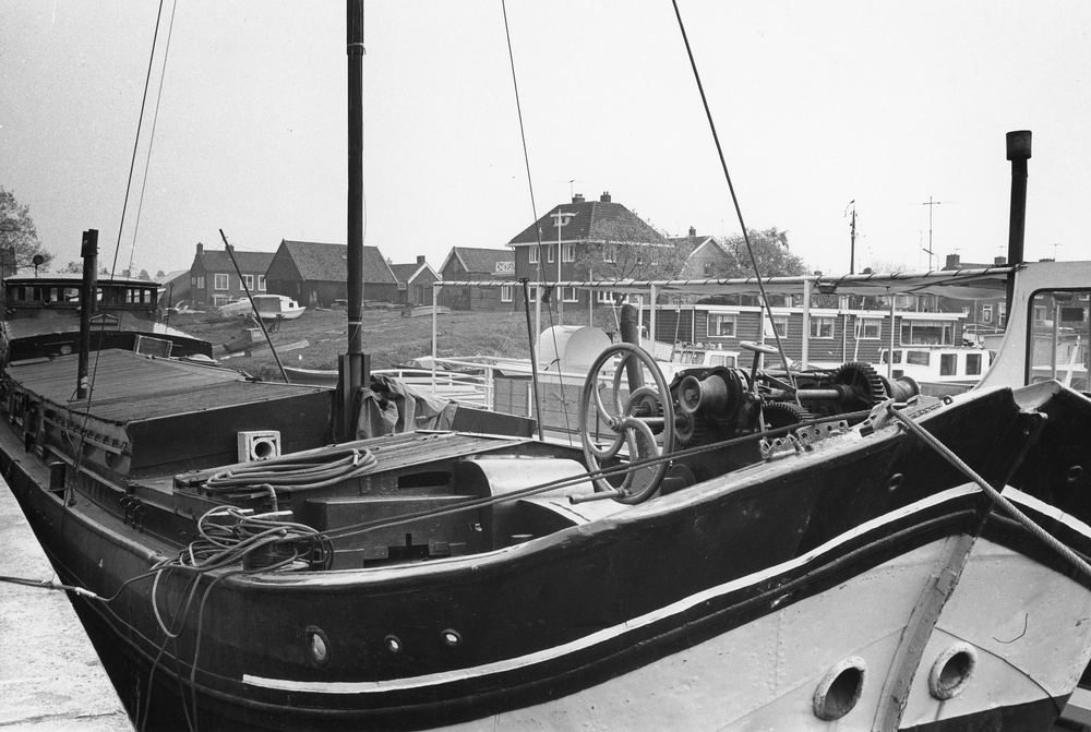 Schip afgemeerd in de haven aan de Havendam