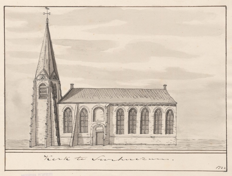 Gezicht op de kerk te Surhuizum