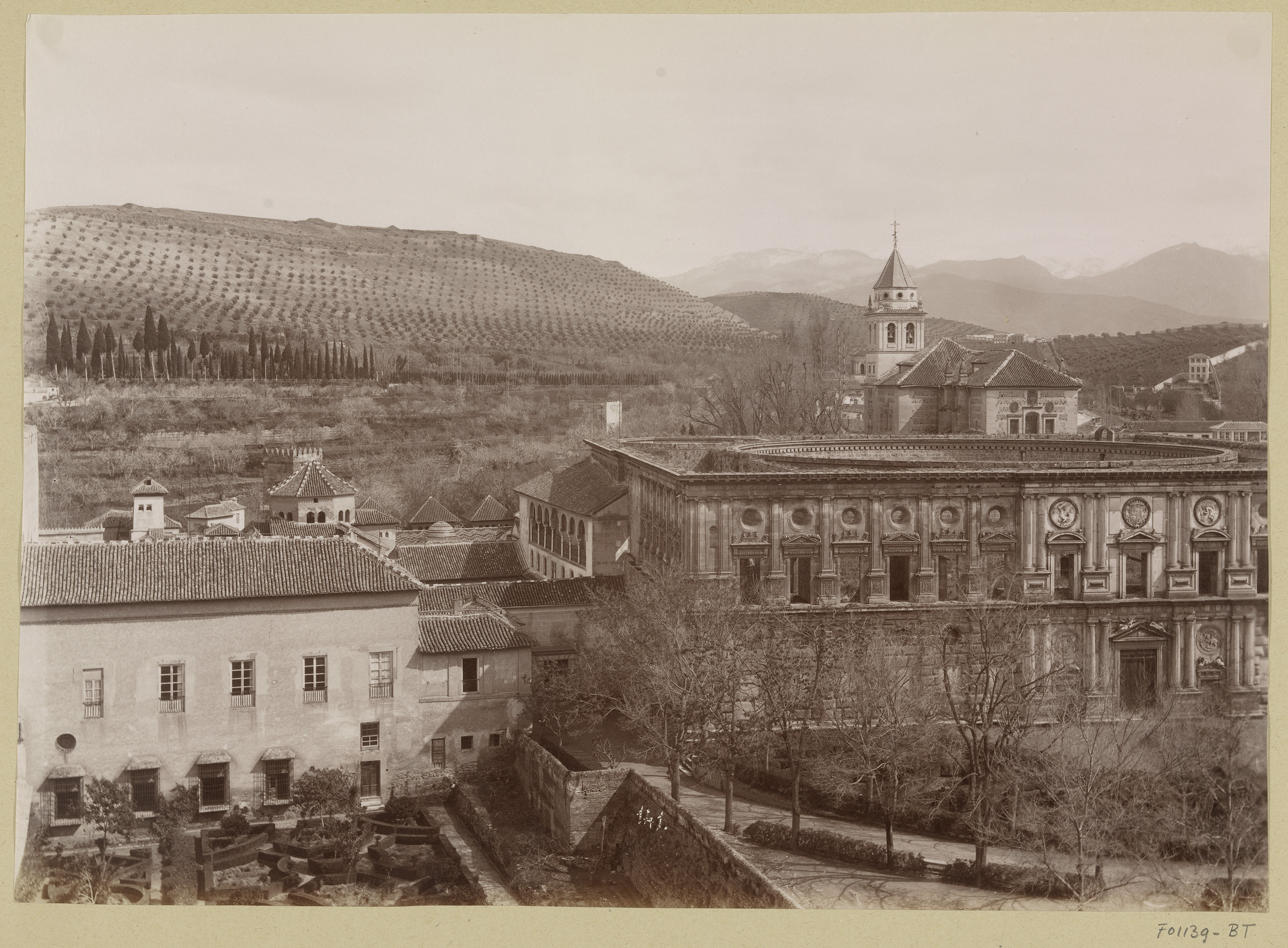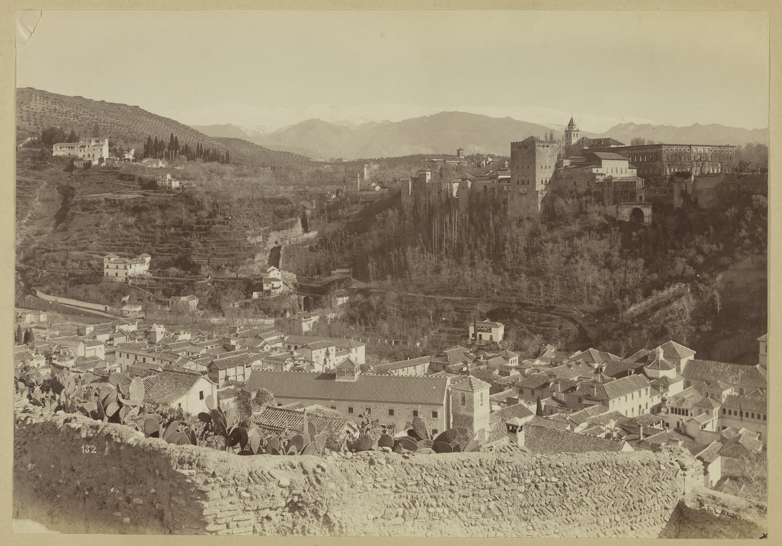 Gezicht op Granada en de Sierra Nevada, links het Al...