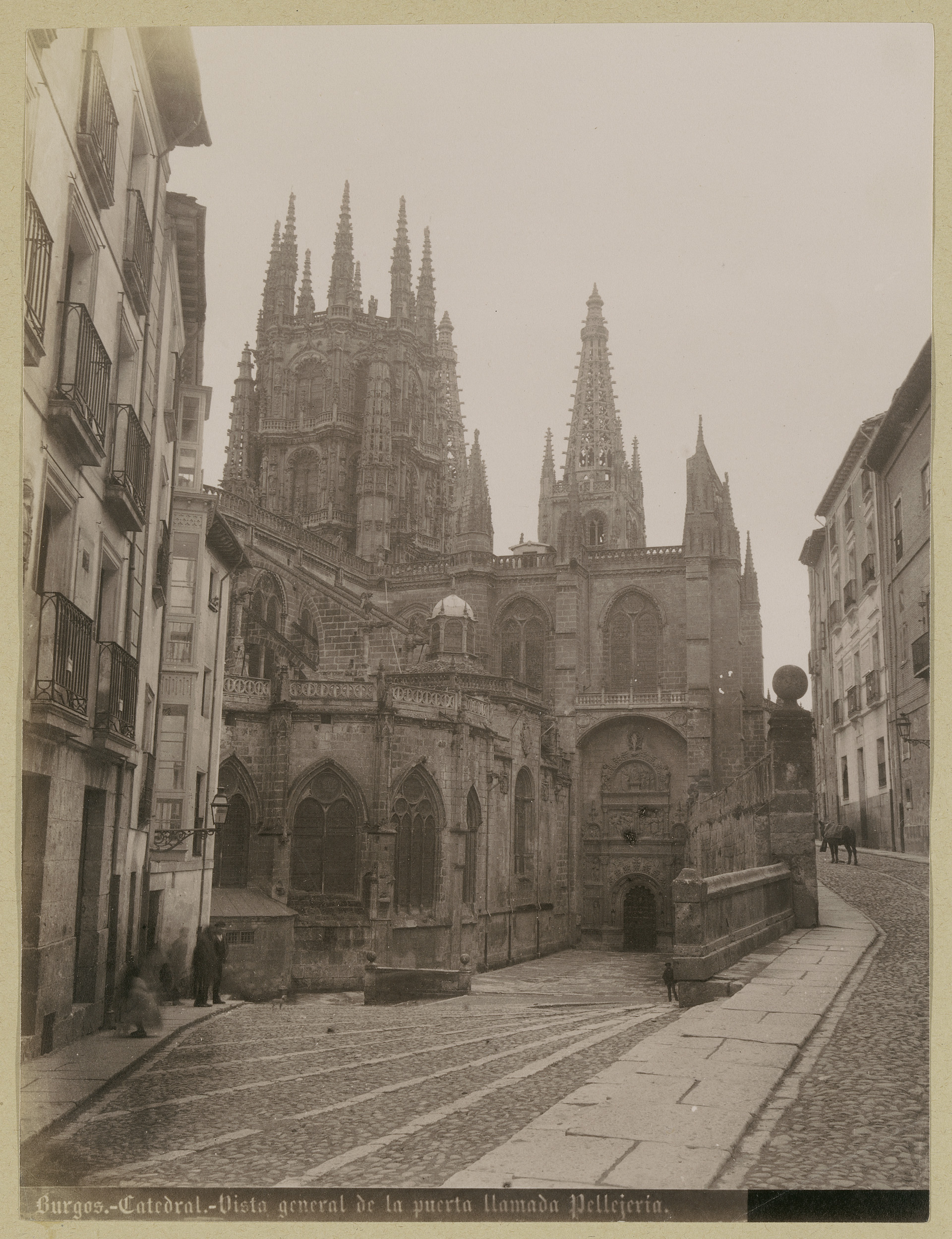 Gezicht op de kathedraal van Burgos, op de voorgrond...
