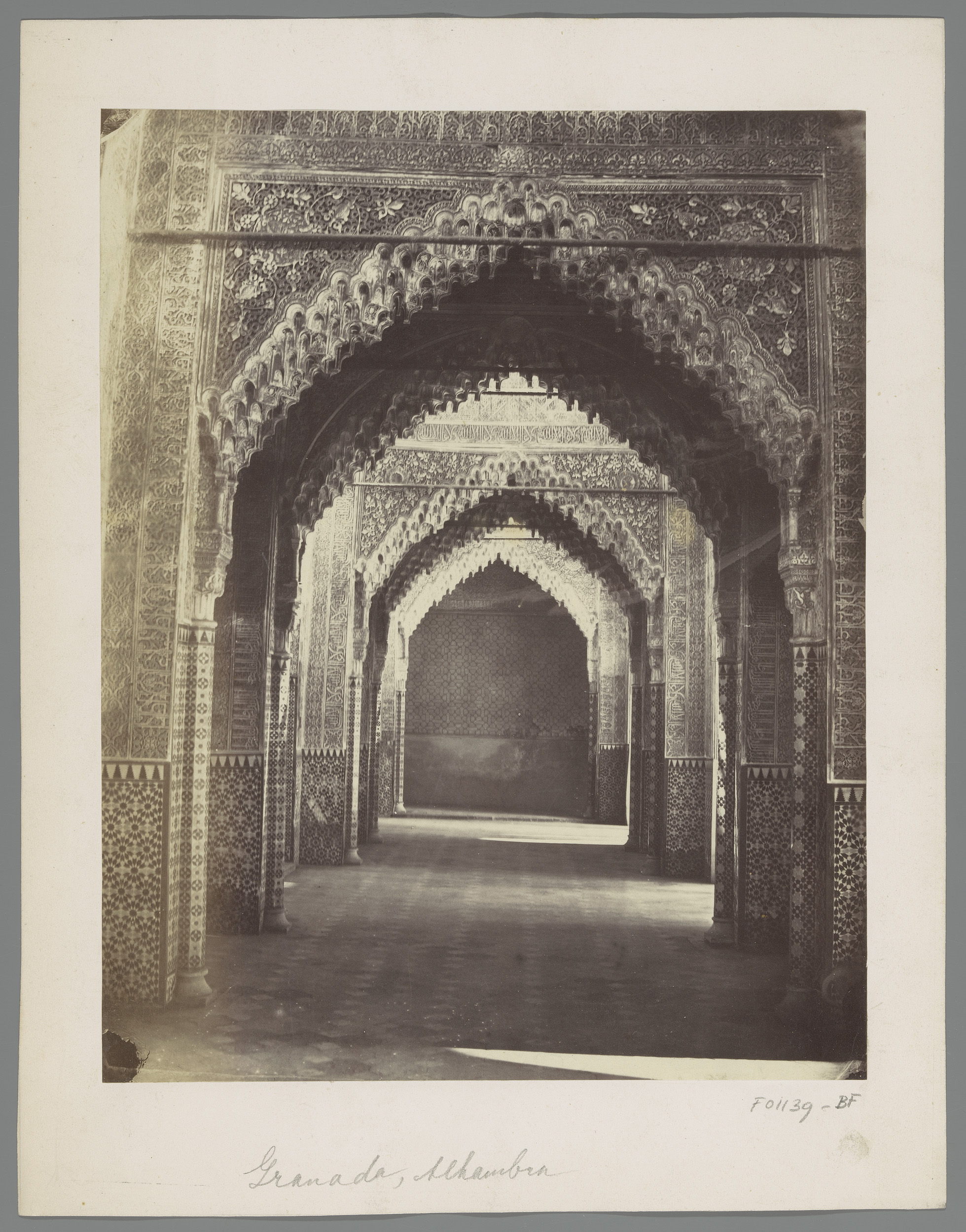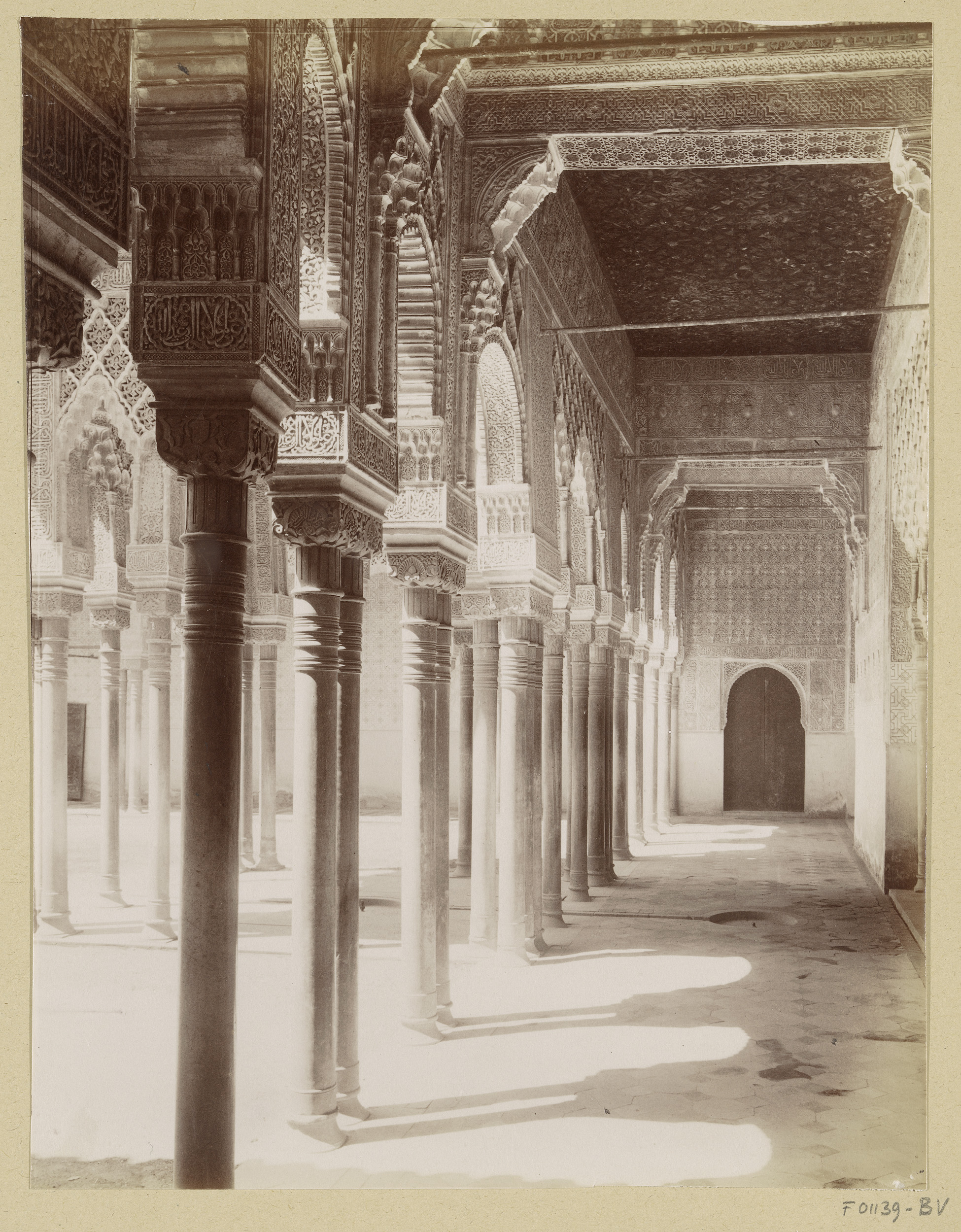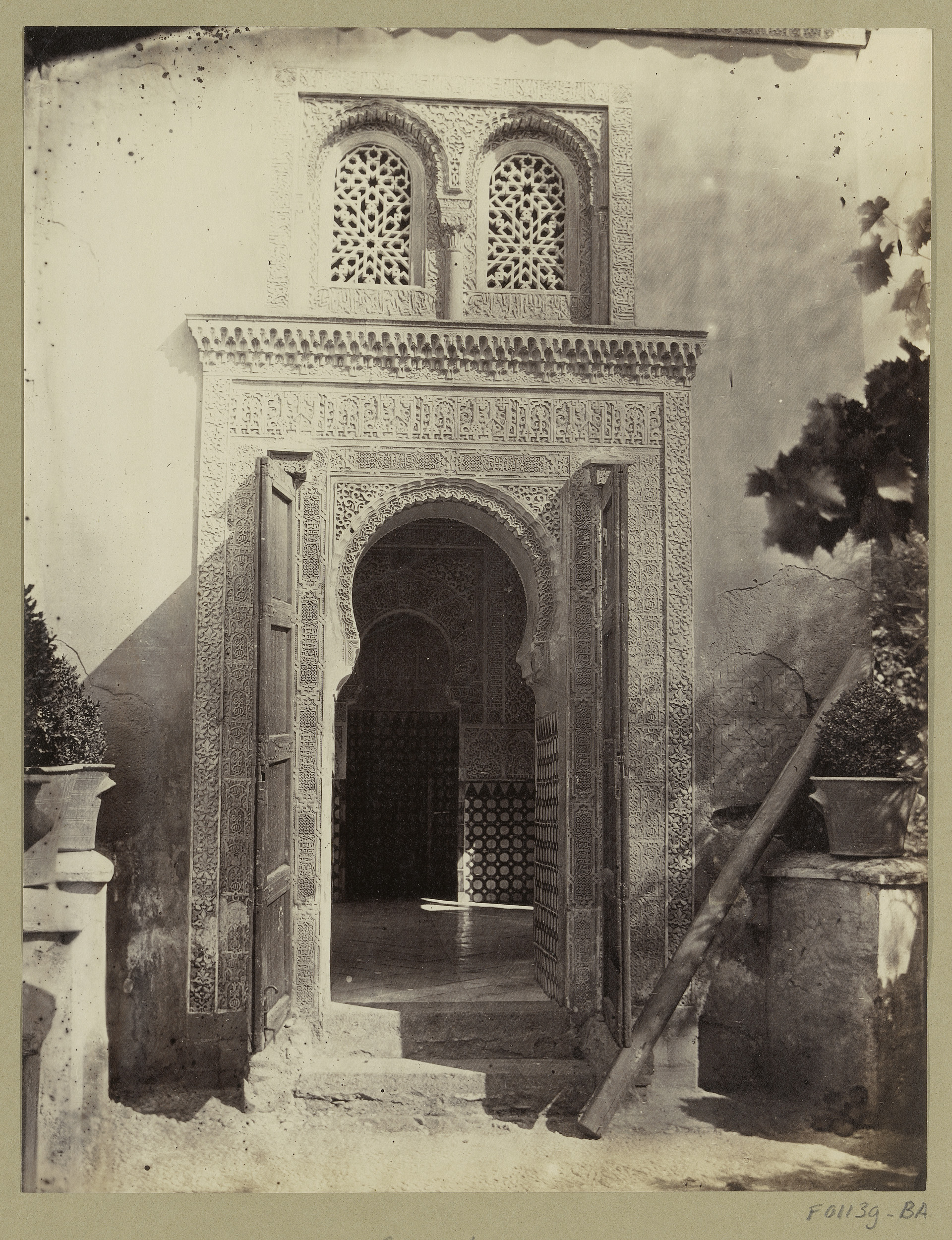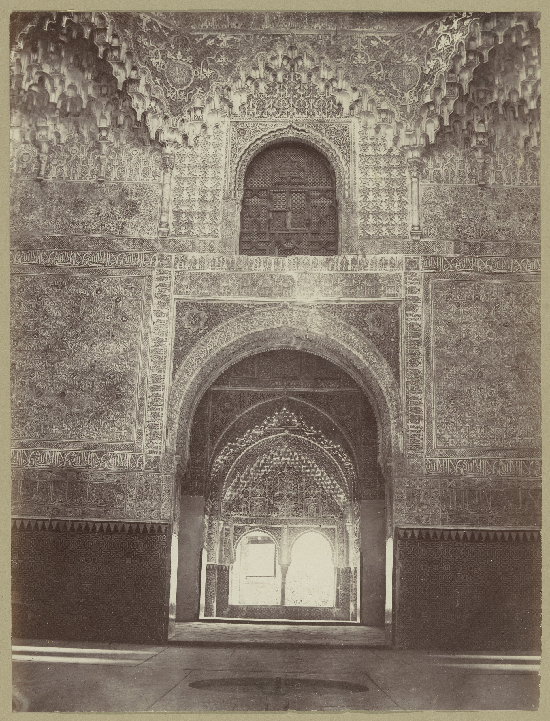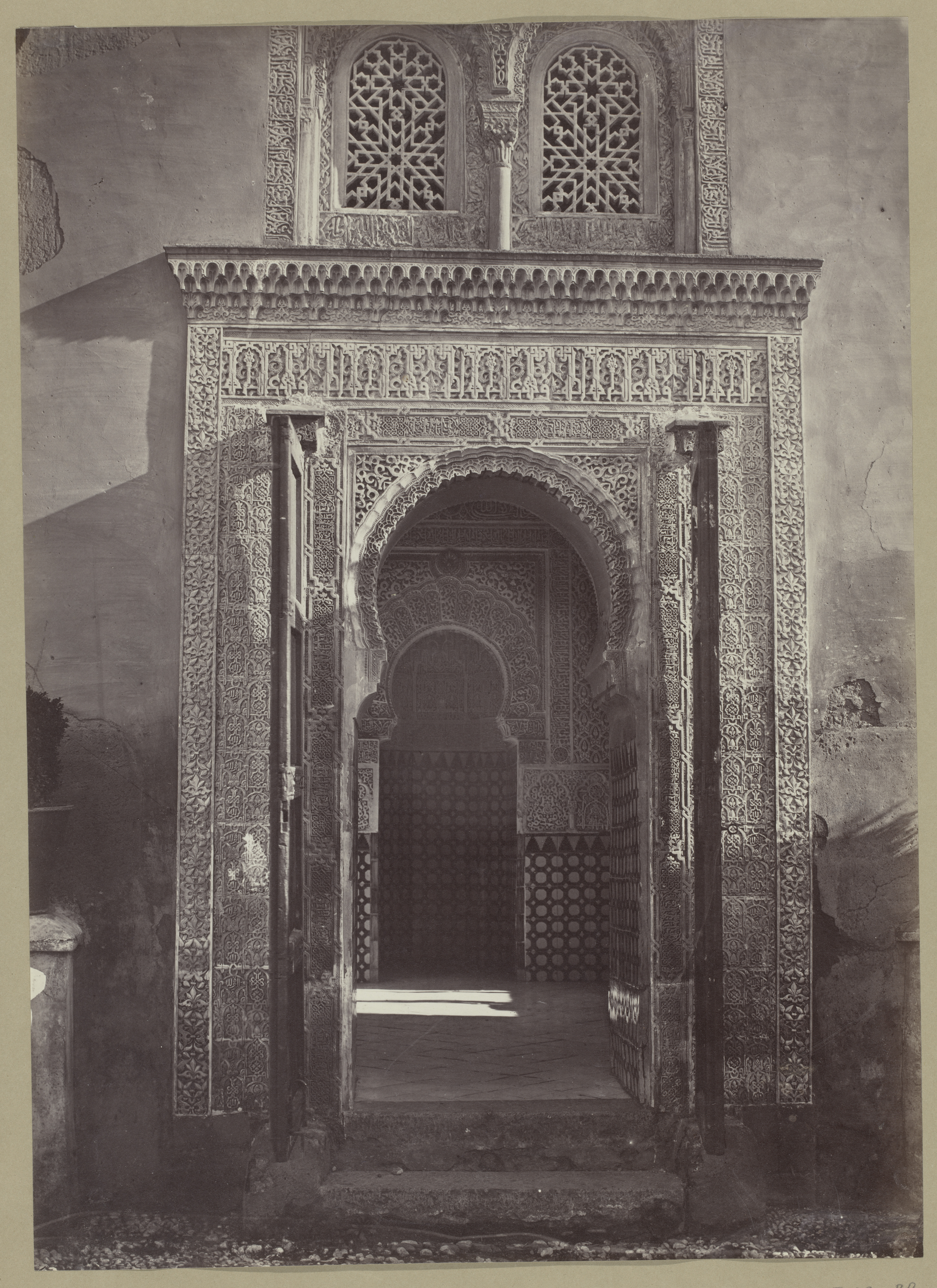 Gezicht op een portaal naar de mihrāb in het Alhambr...