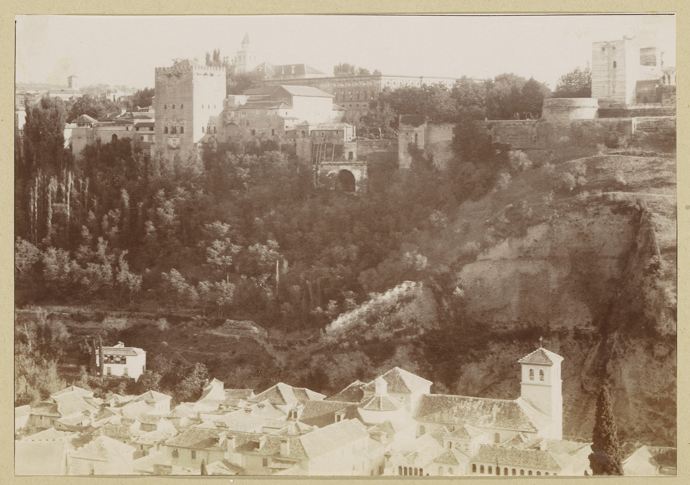 Gezicht op Granada, op de achtergrond het Alhambra