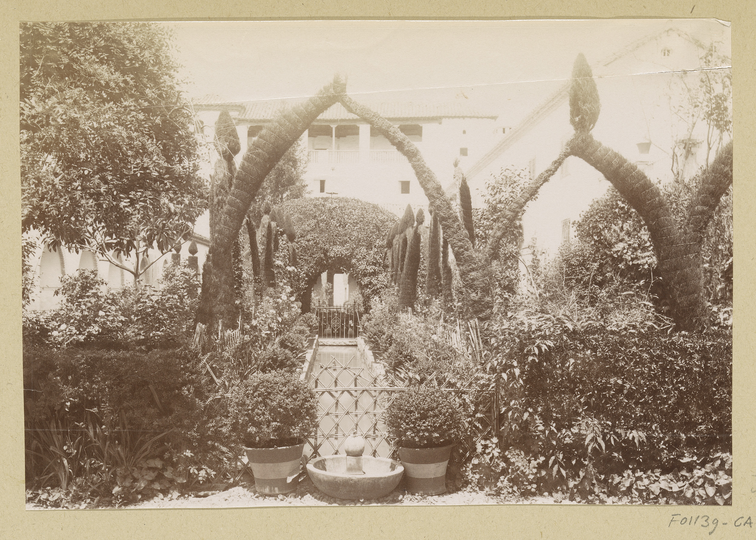 Gezicht op de tuinen van het Palacio de Generalife b...