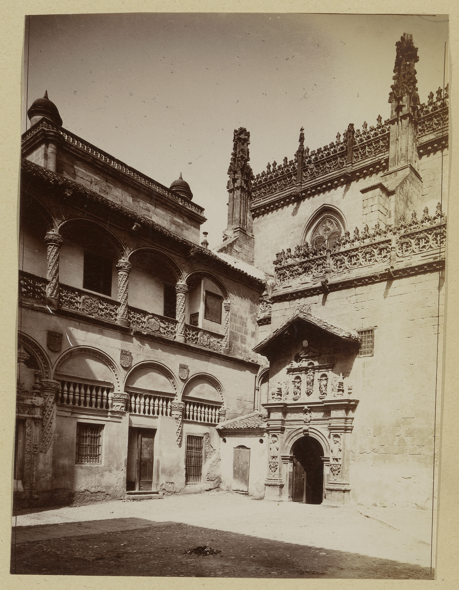 Gezicht op de entrée van de koninklijke kapel in de ...