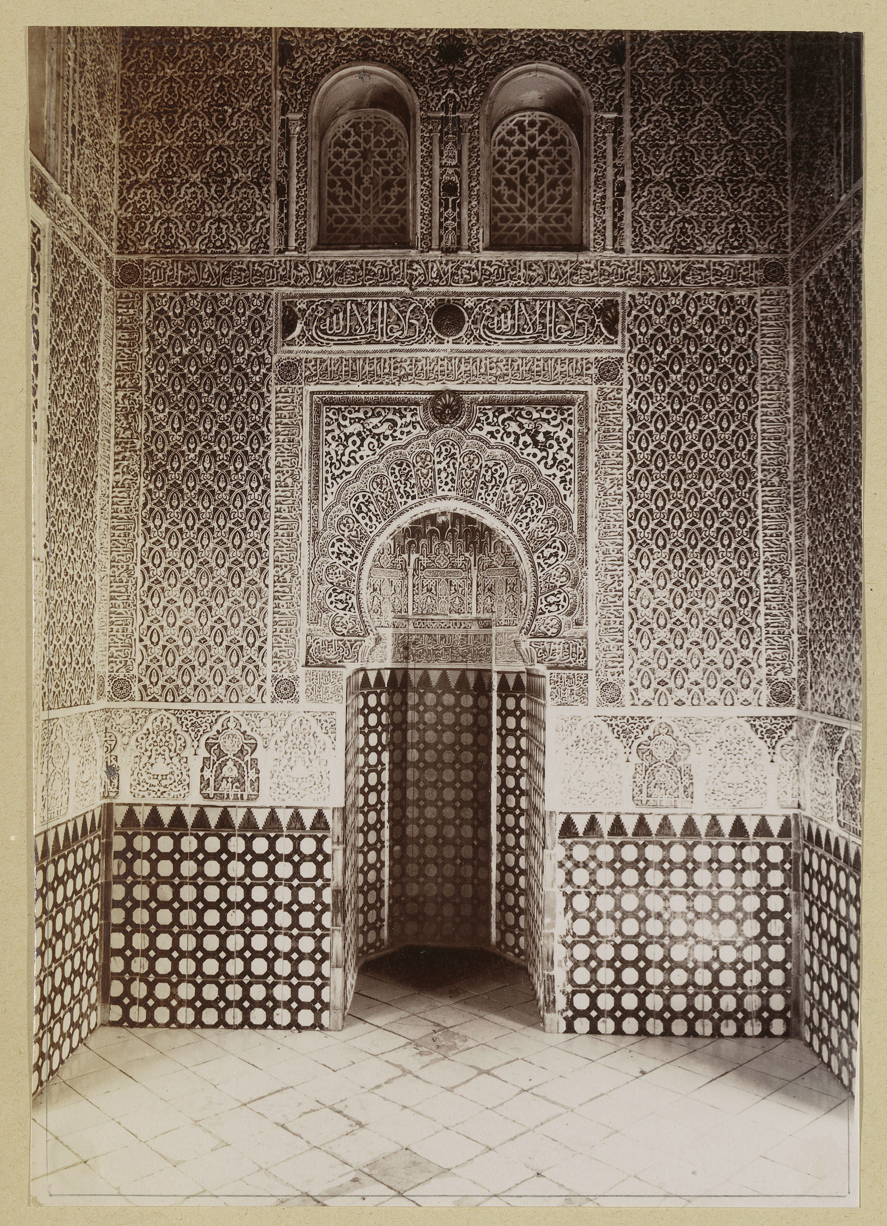 Gezicht op de mihrāb in het Alhambra in Granada