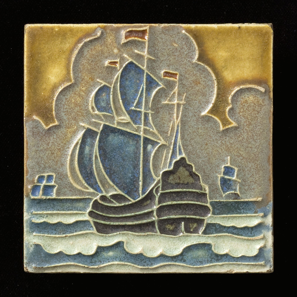 Tegel in cloisonné-techniek, voorstellende Oost-Indi...