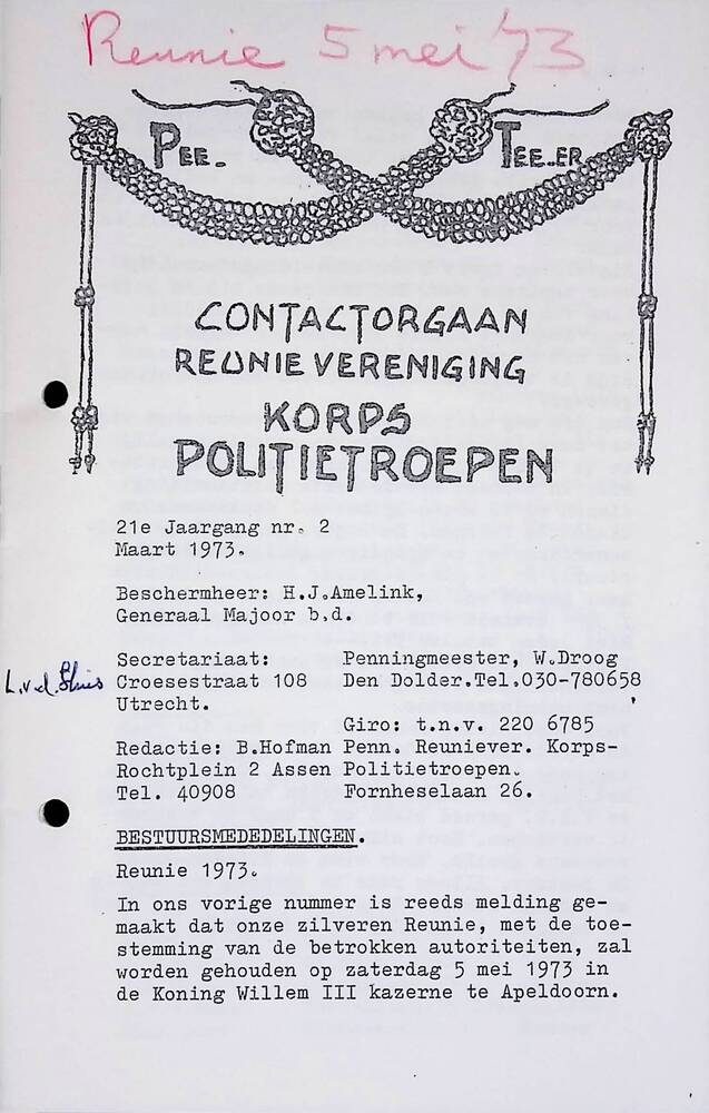 Pee. Tee.er. Contactorgaan Reünievereniging Korps Po...