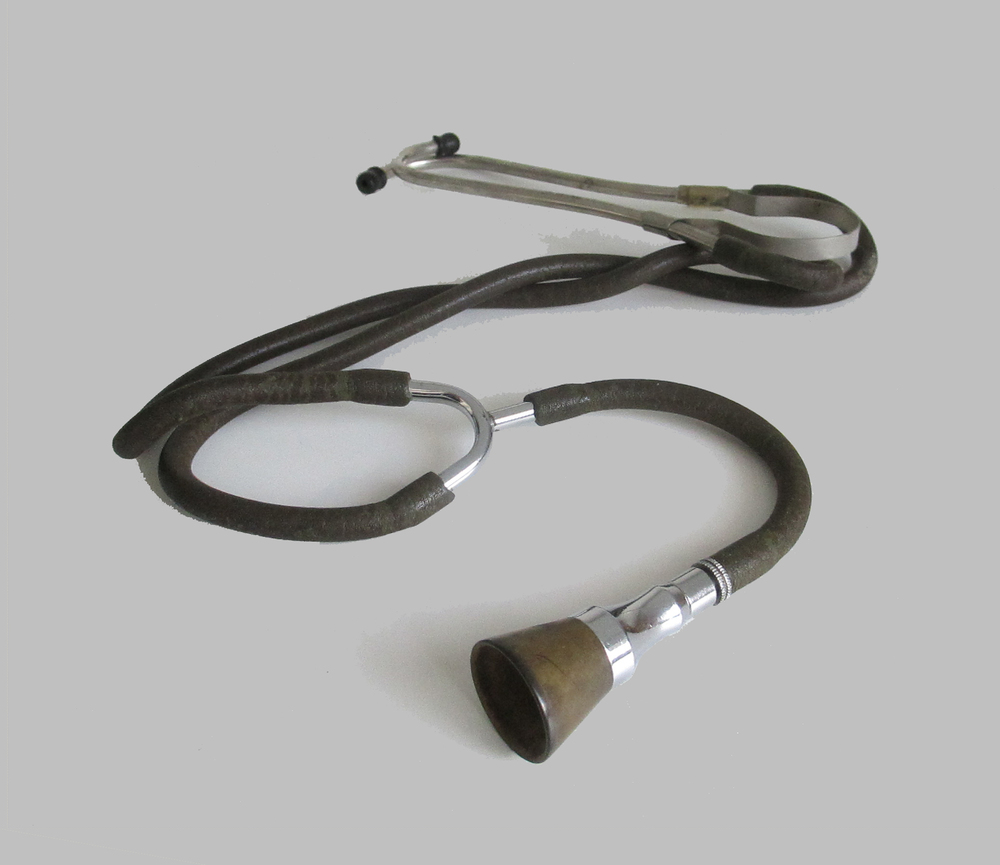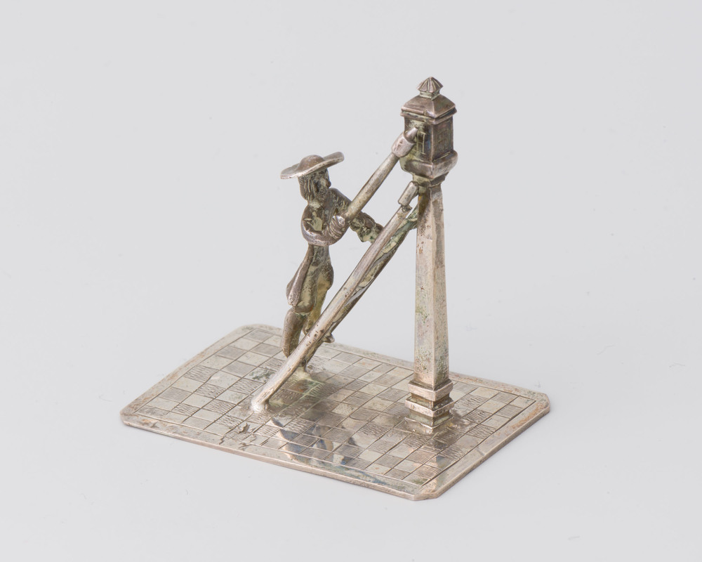 Sigarettenhouder van metaal en hout in de vorm van e...