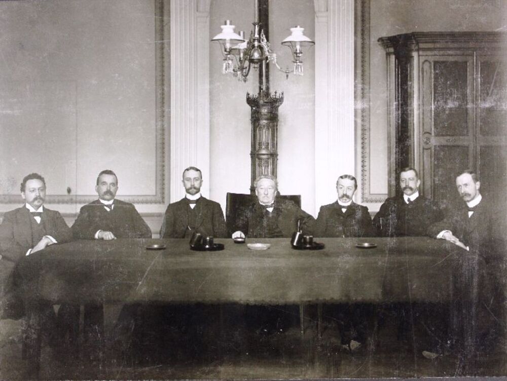 Foto, voorstellende het bordes van het stadhuis, cir...