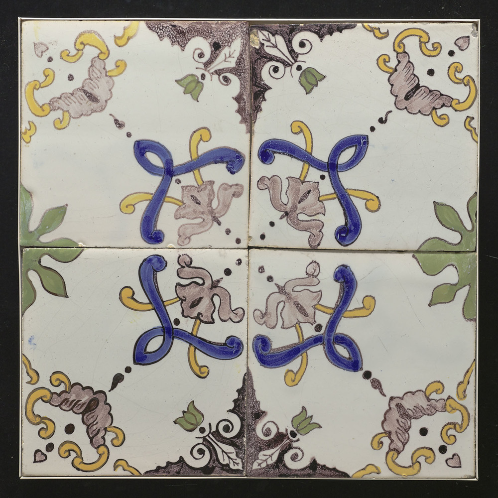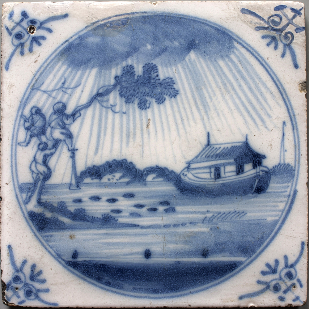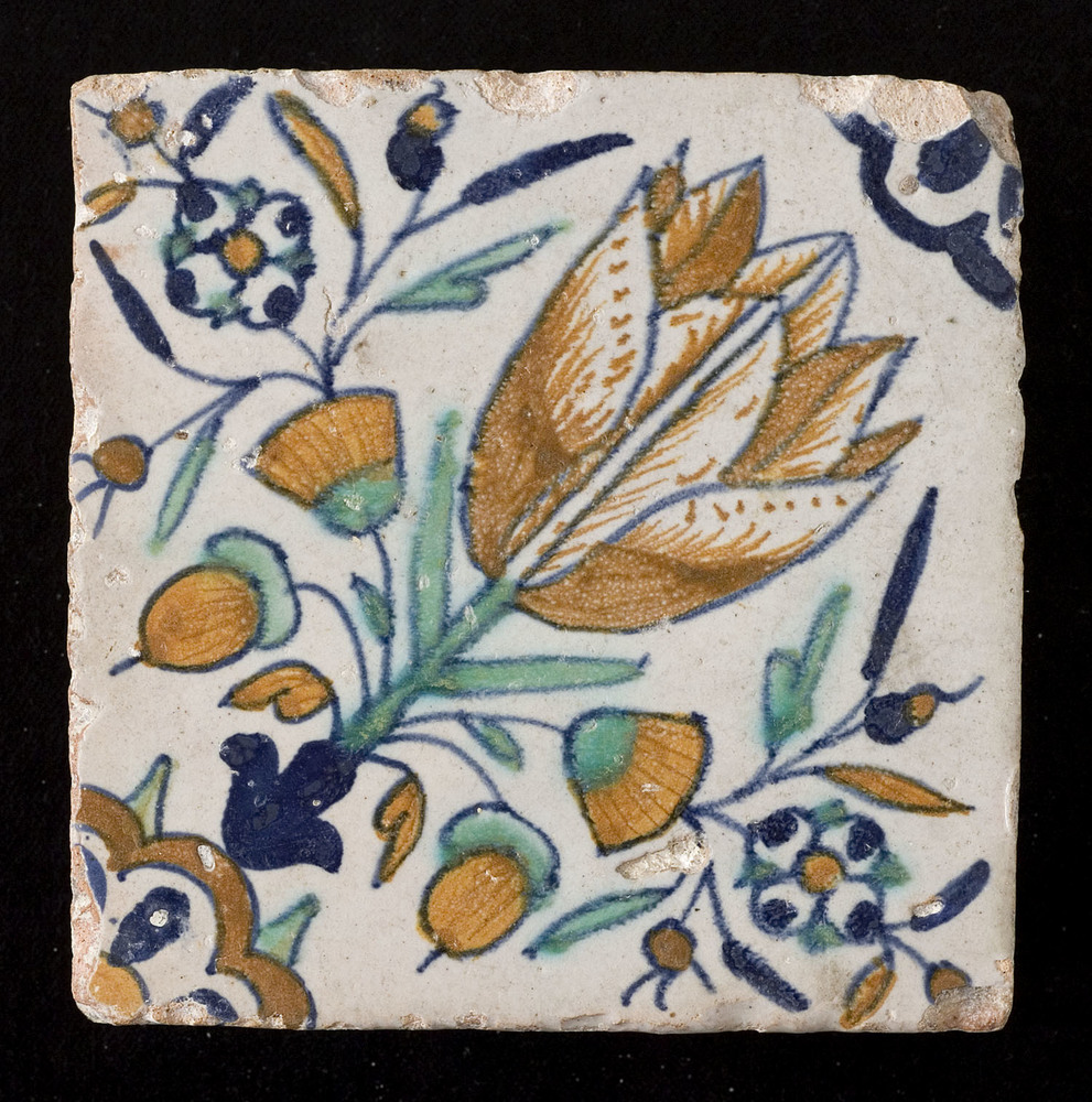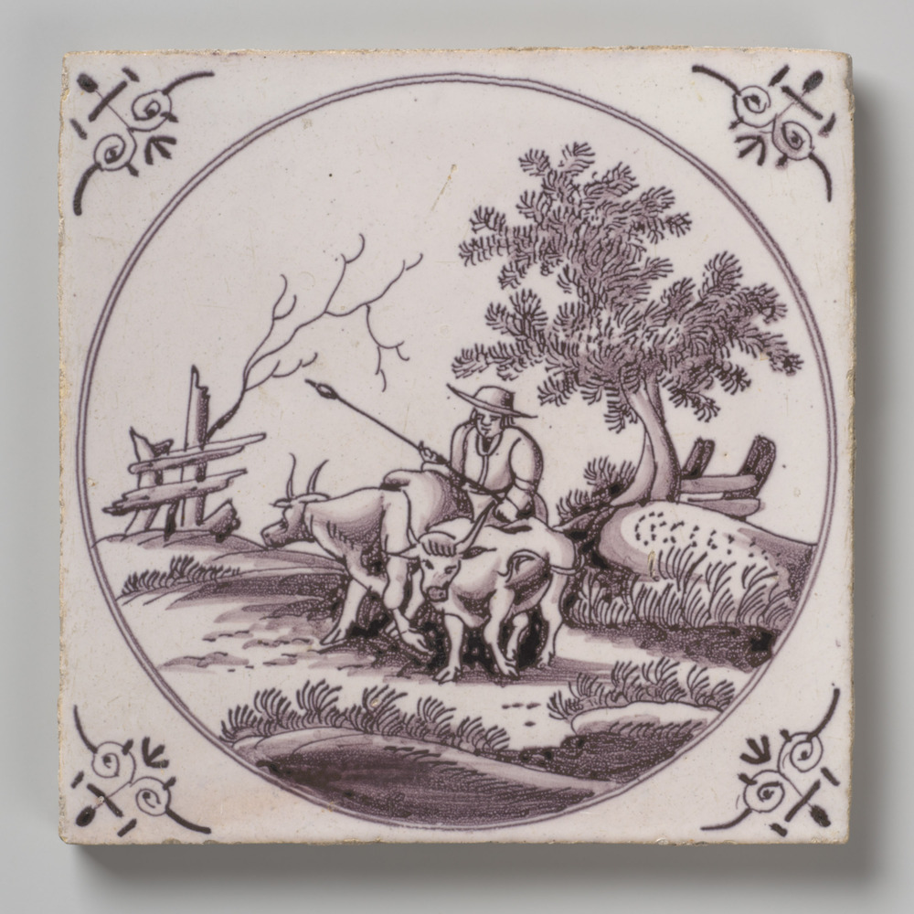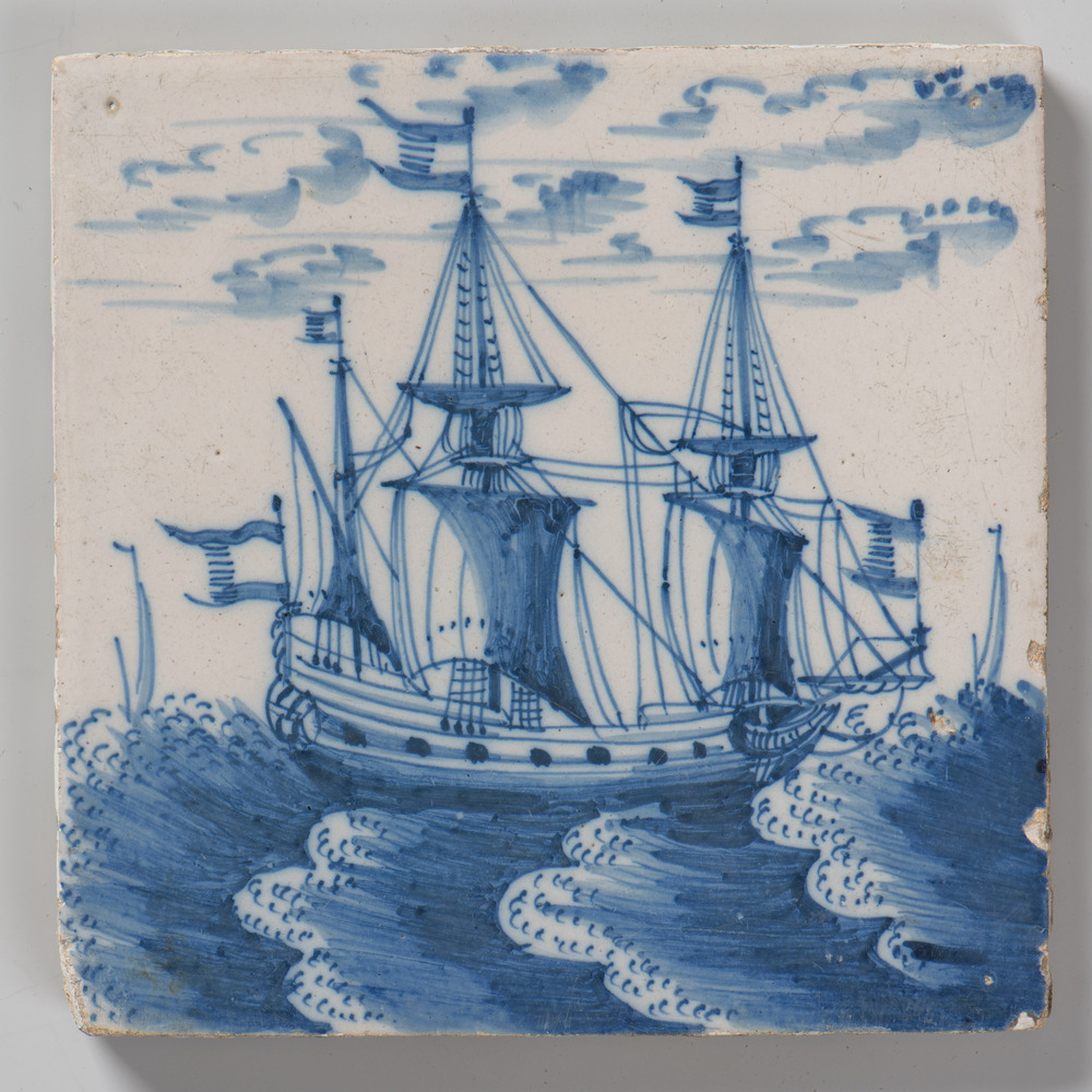 tegel van keramiek met tinglazuur, voorstellende: ze...