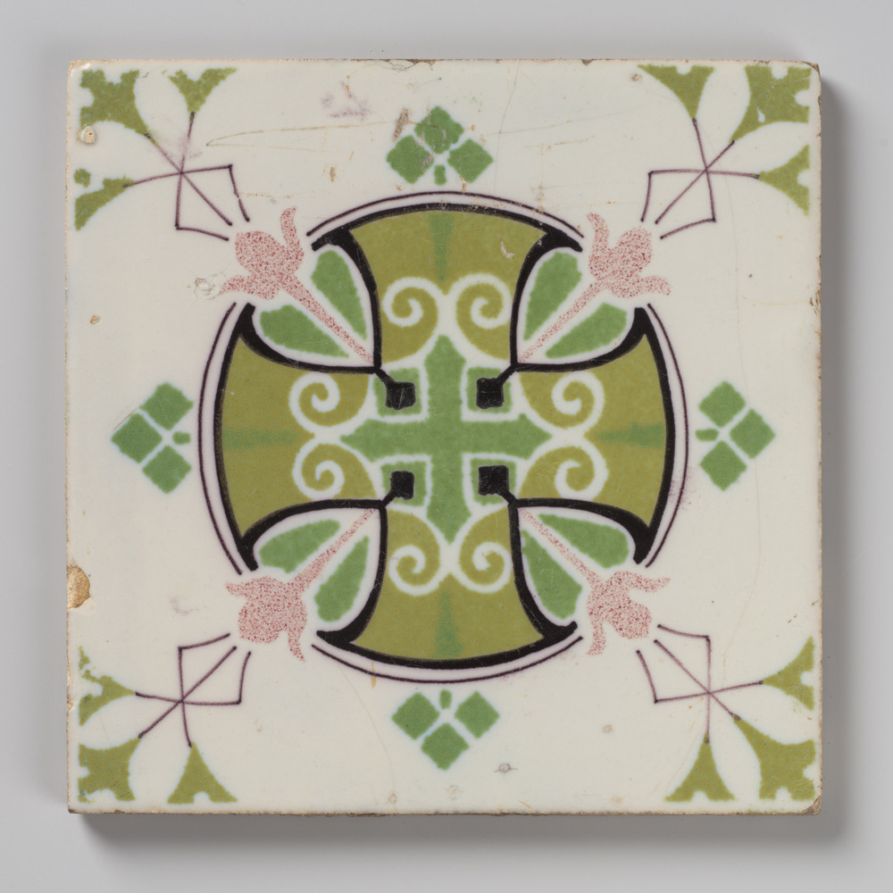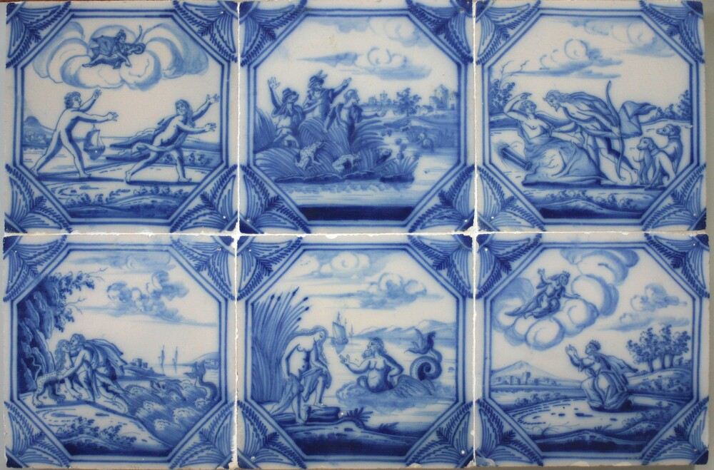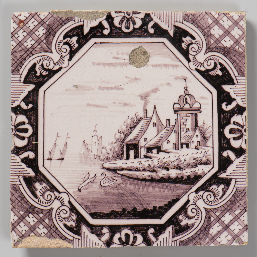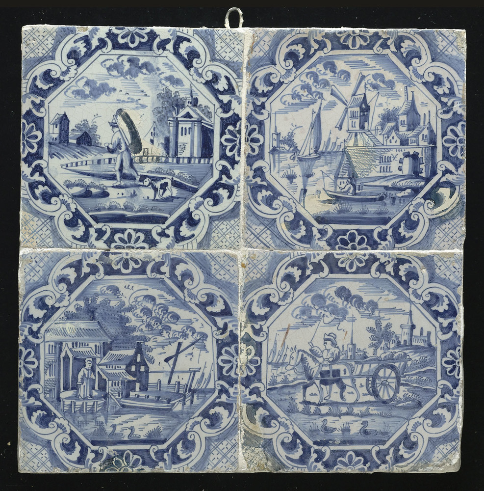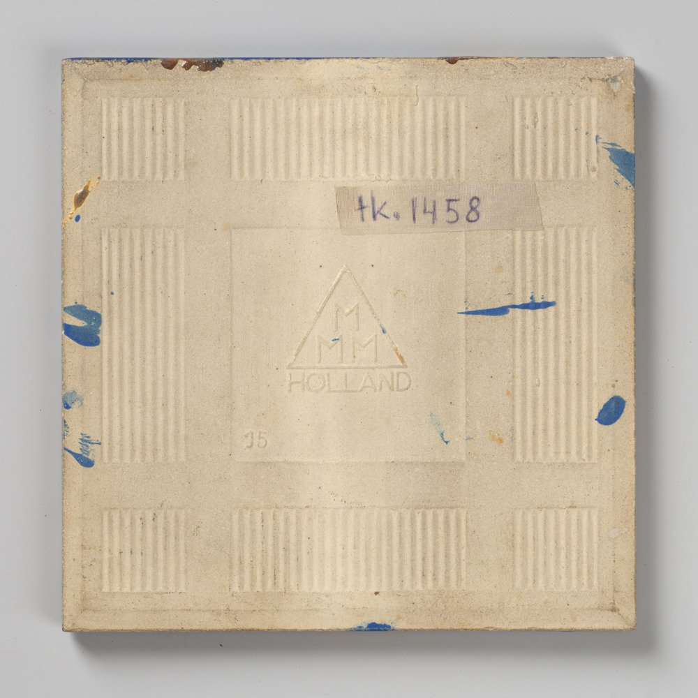tegel van keramiek met tinglazuur, voorstellende: ze...