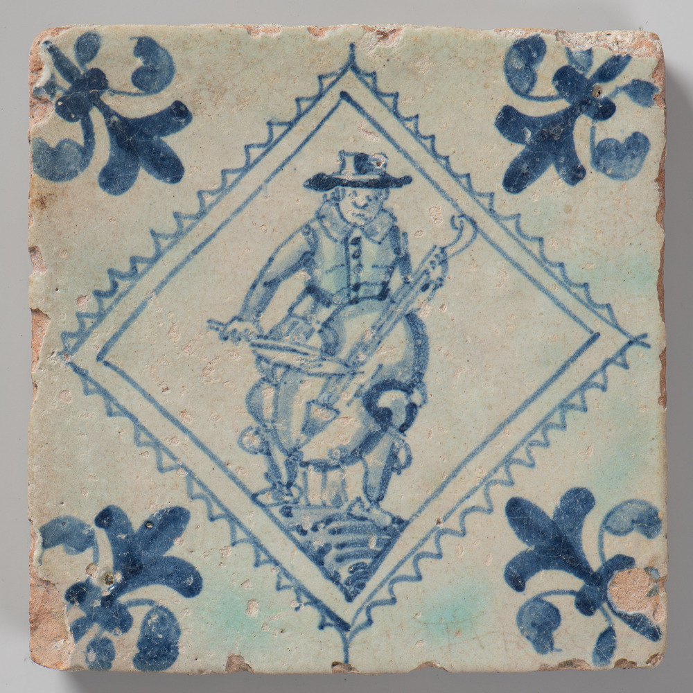 tegel van aardewerk in tinglazuur, voorstellende: la...
