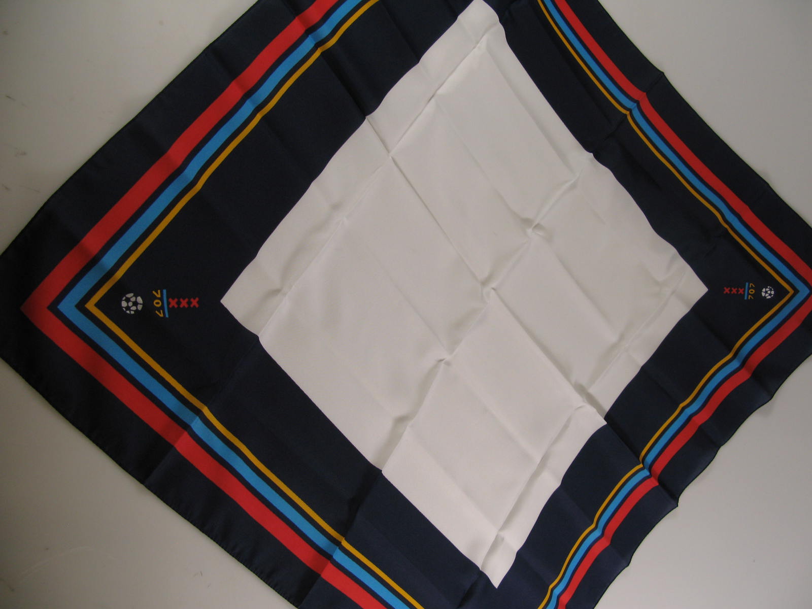 Blauw, wit, geel en rode sjaal "XXX 707" met voetbal