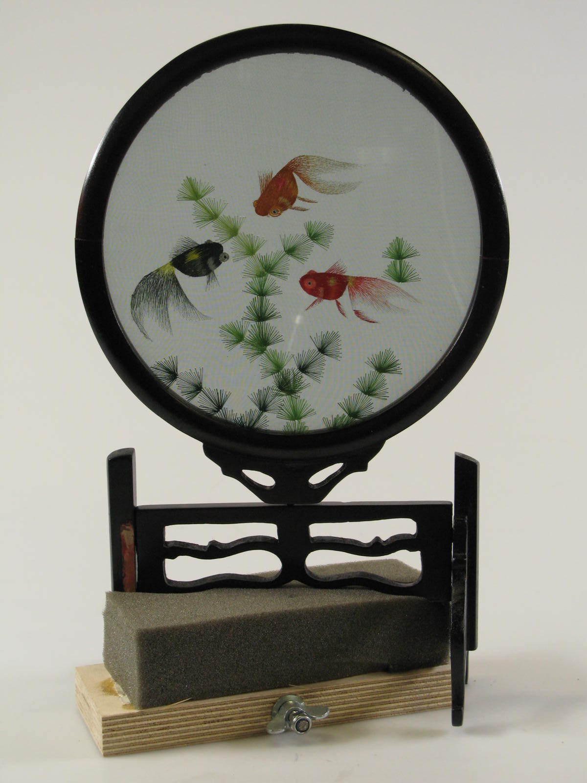 Borduursel voorstellende drie vissen en plantje