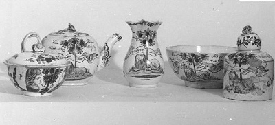 Theeservies bestaande uit theepot, melkkan, spoelkom...