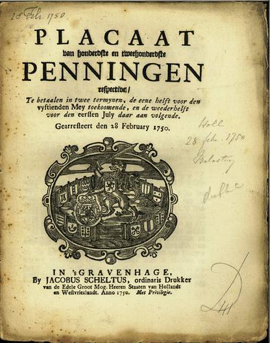 Plakkaat, 100e en 200e penning, 1750