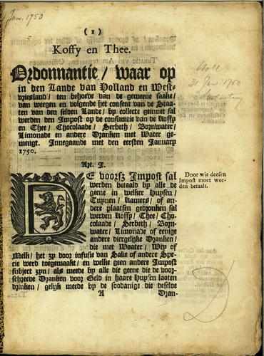 Ordonnantie impost turf en kolen, 1749