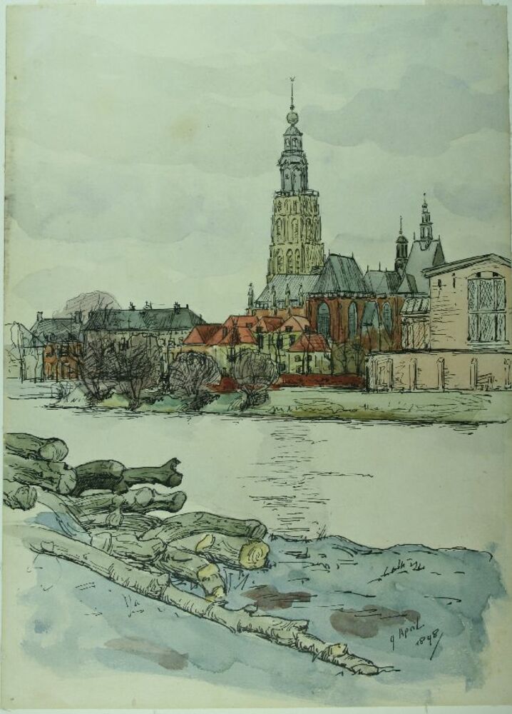 Tekening op papier met Oost-Indische inkt van Didam ...