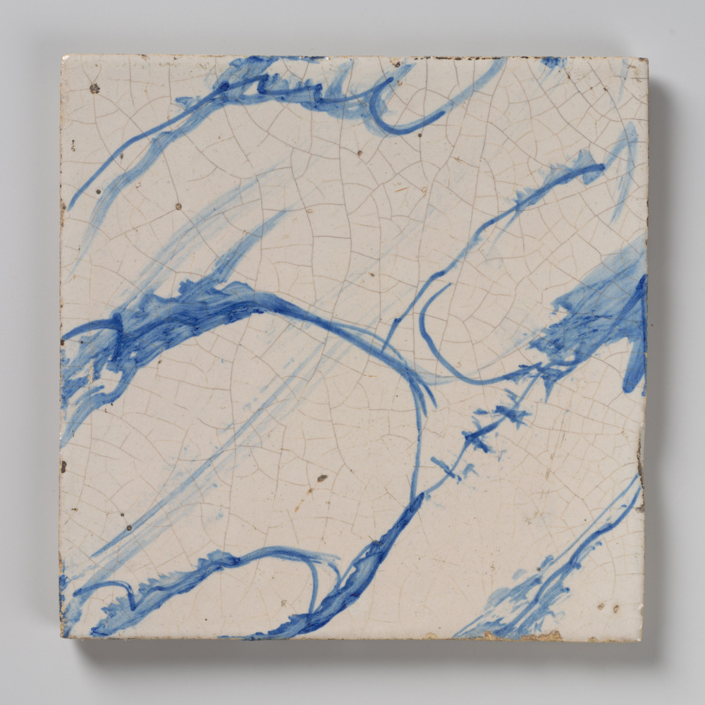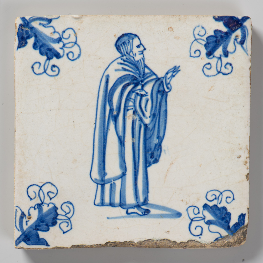 tegel van aardewerk met tinglazuur, voorstellende: h...