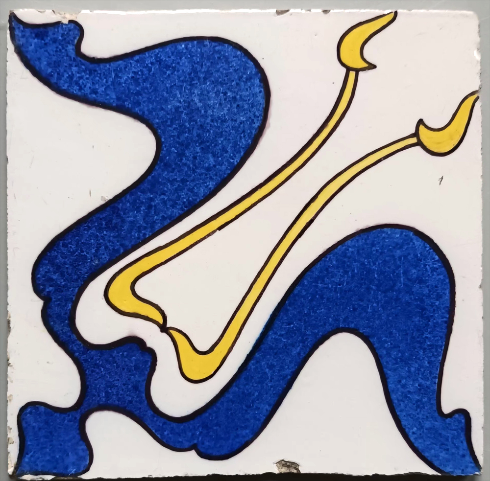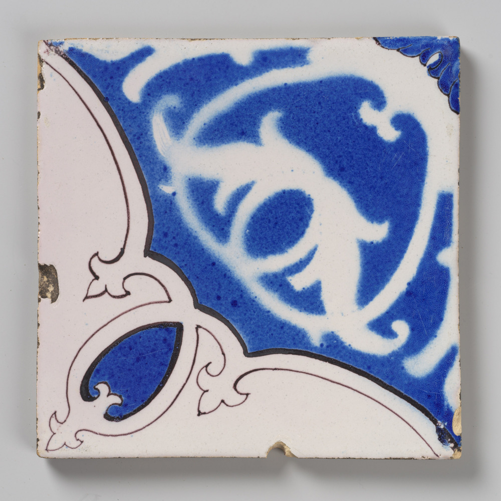 Tegel van keramiek met tinglazuur, voorstellende: El...