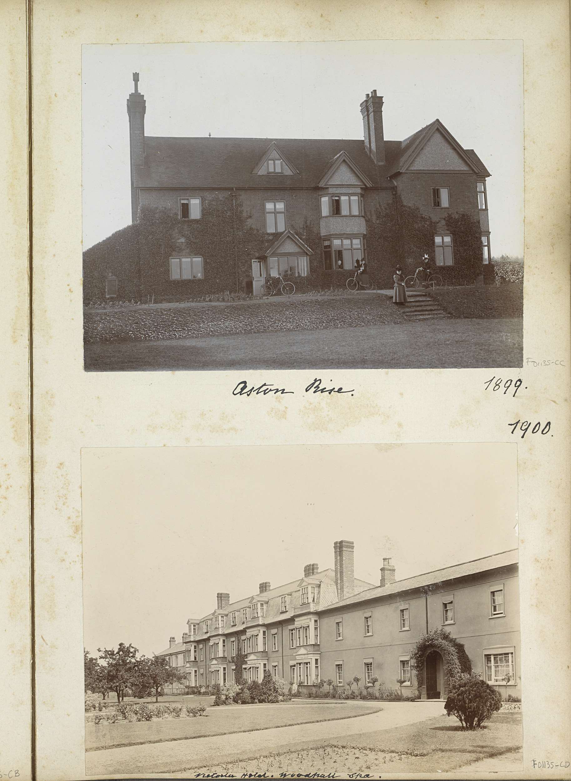 Vier vrouwen met fietsen poserend voor een landhuis ...