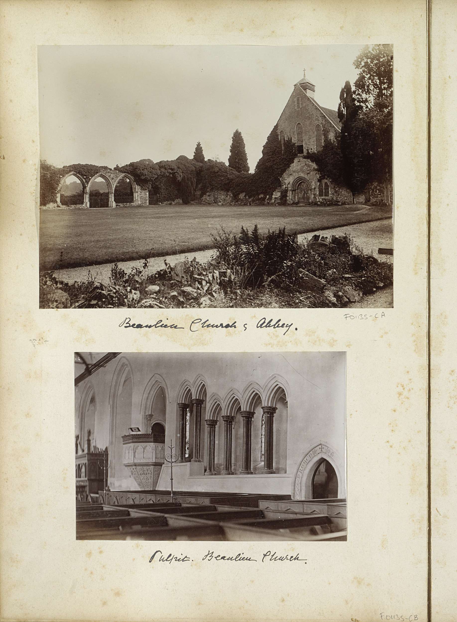 Gezicht op Beaulieu Church (rechts) en de ruïne van ...