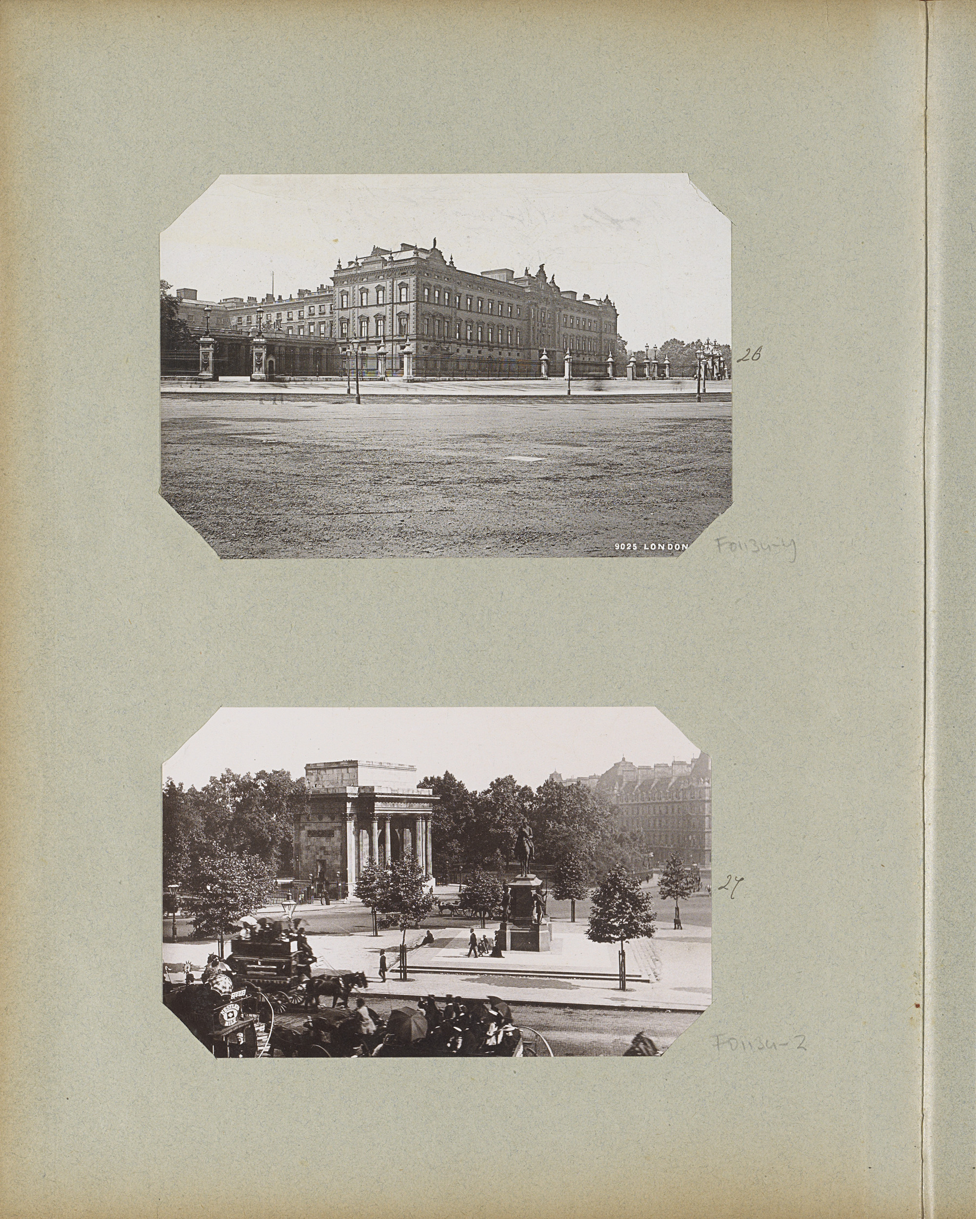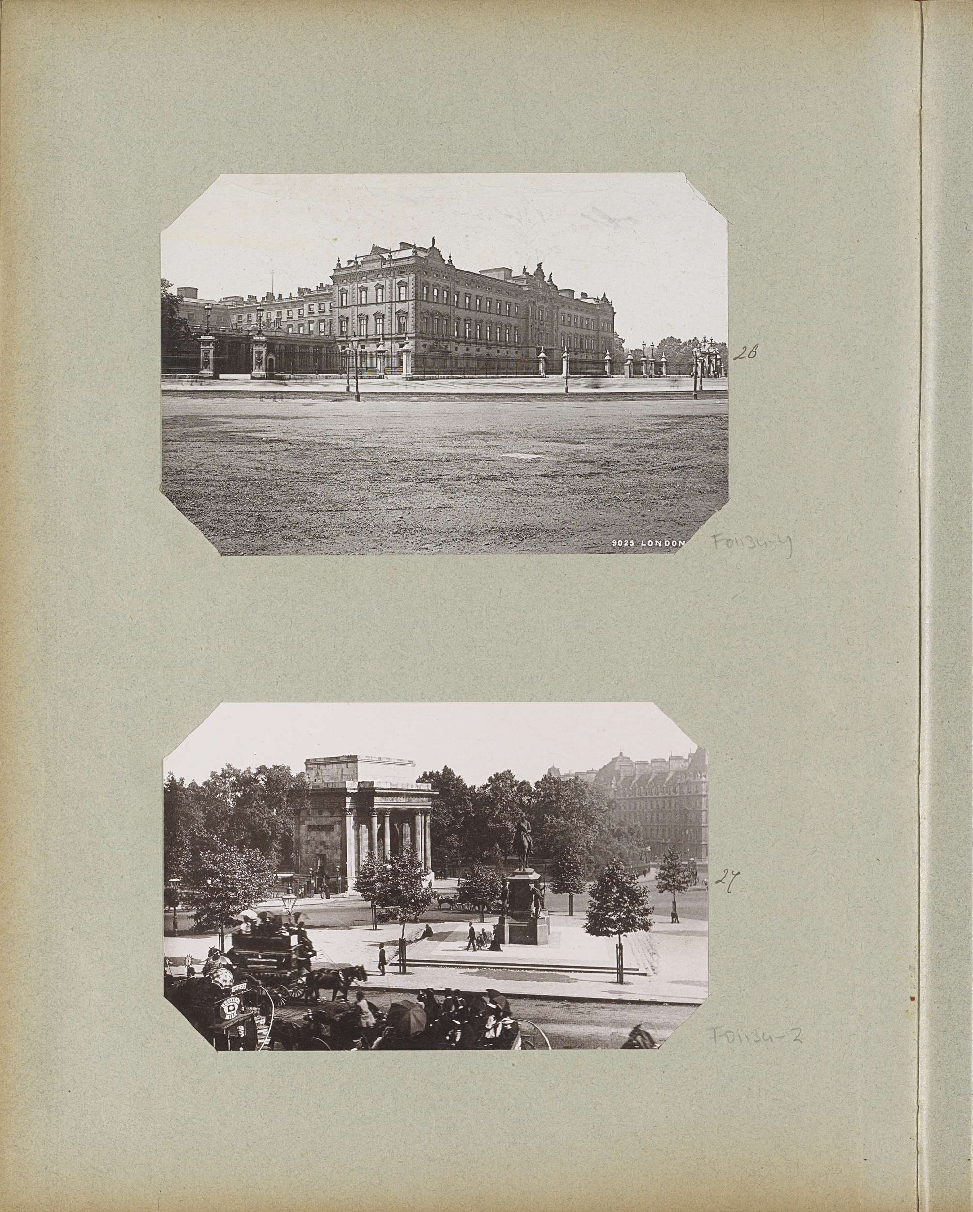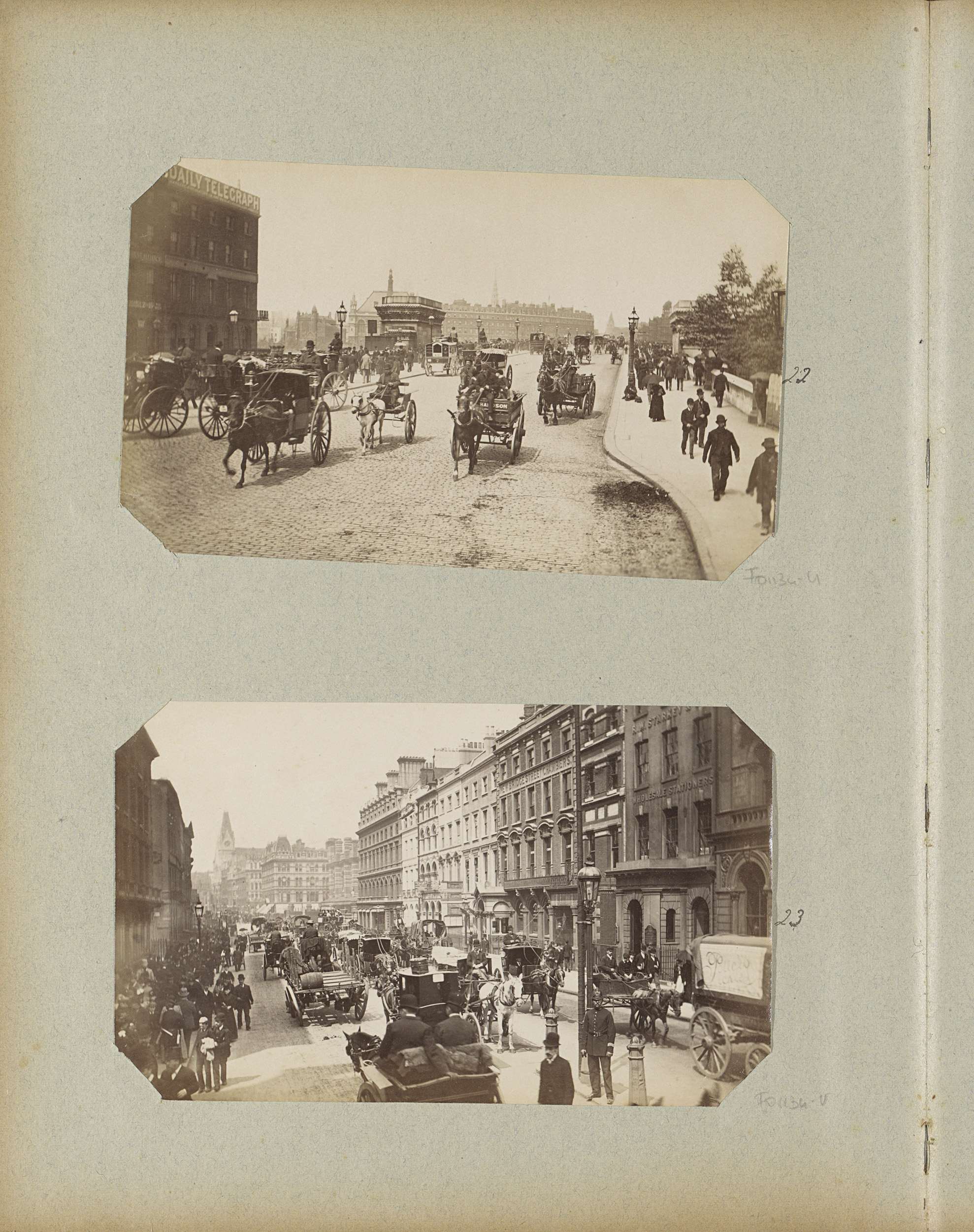 Paardenkoetsen en voorbijgangers op Blackfriars Brid...