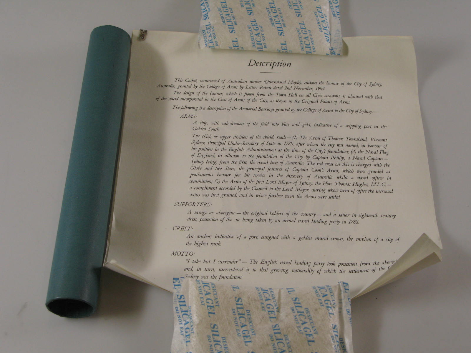 Vaandel van de stad Sydney (Australië), in kist