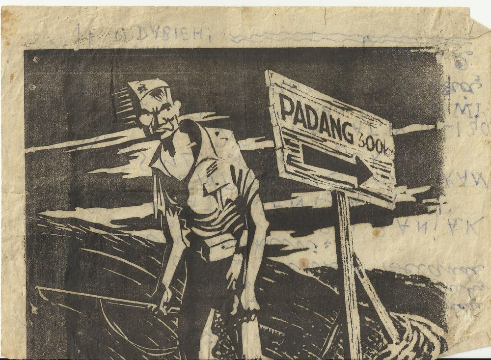 half affiche pro-Indonesië, woorden en tekening in h...