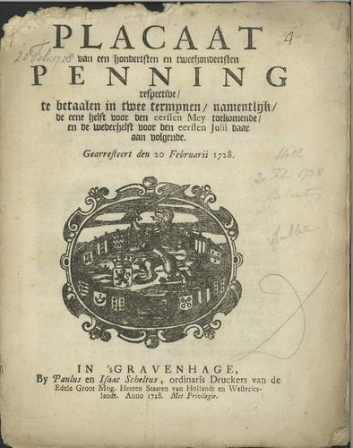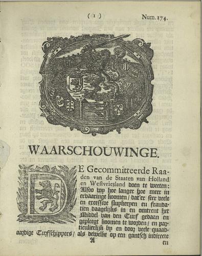 Plakkaat accijns op turf, 1728