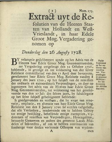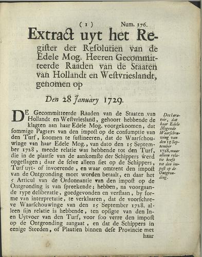 Resolutie op de ontgronding van turf, 1729