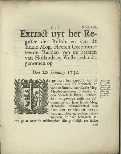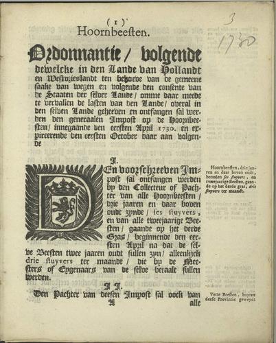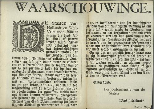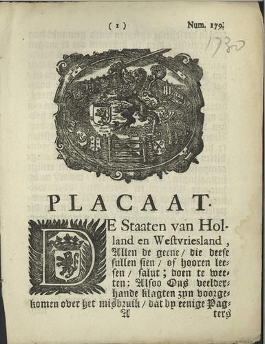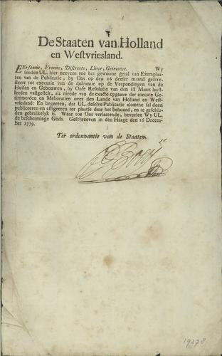 Plakkaat Holland en Westfriesland, 1730