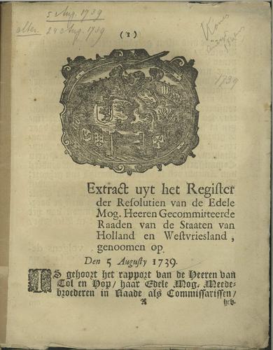Begeleidingbrief plakkaten, 1739
