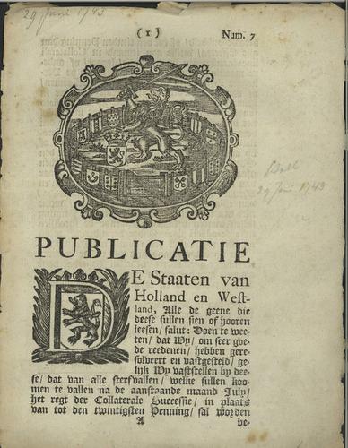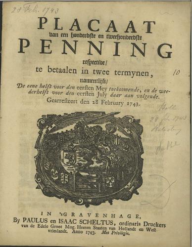 Plakkaat, 10e penning op de collaterale successie, 1743