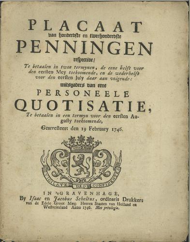 Plakkaat, personele quotisatie, 1742