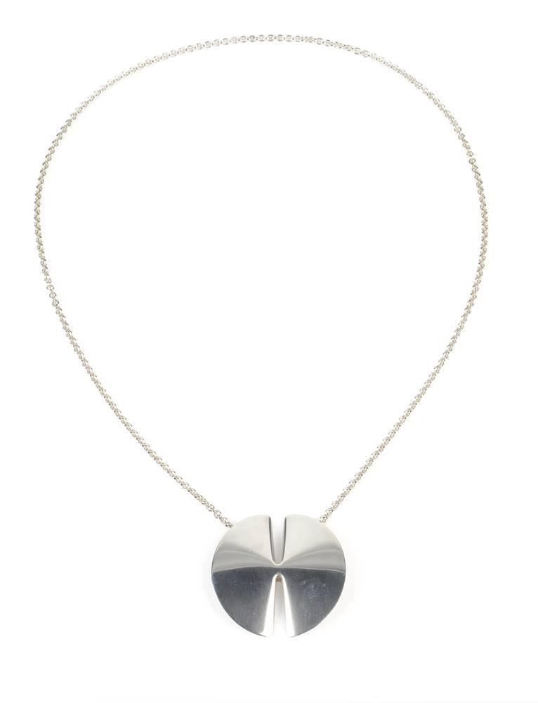 halssieraad met gebolde zilveren schijf als hanger