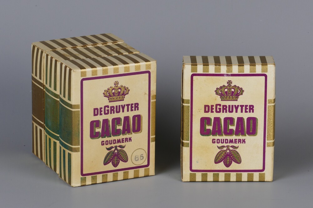 Cacaopoeder in verpakking met kleurenopdruk, circa 1960