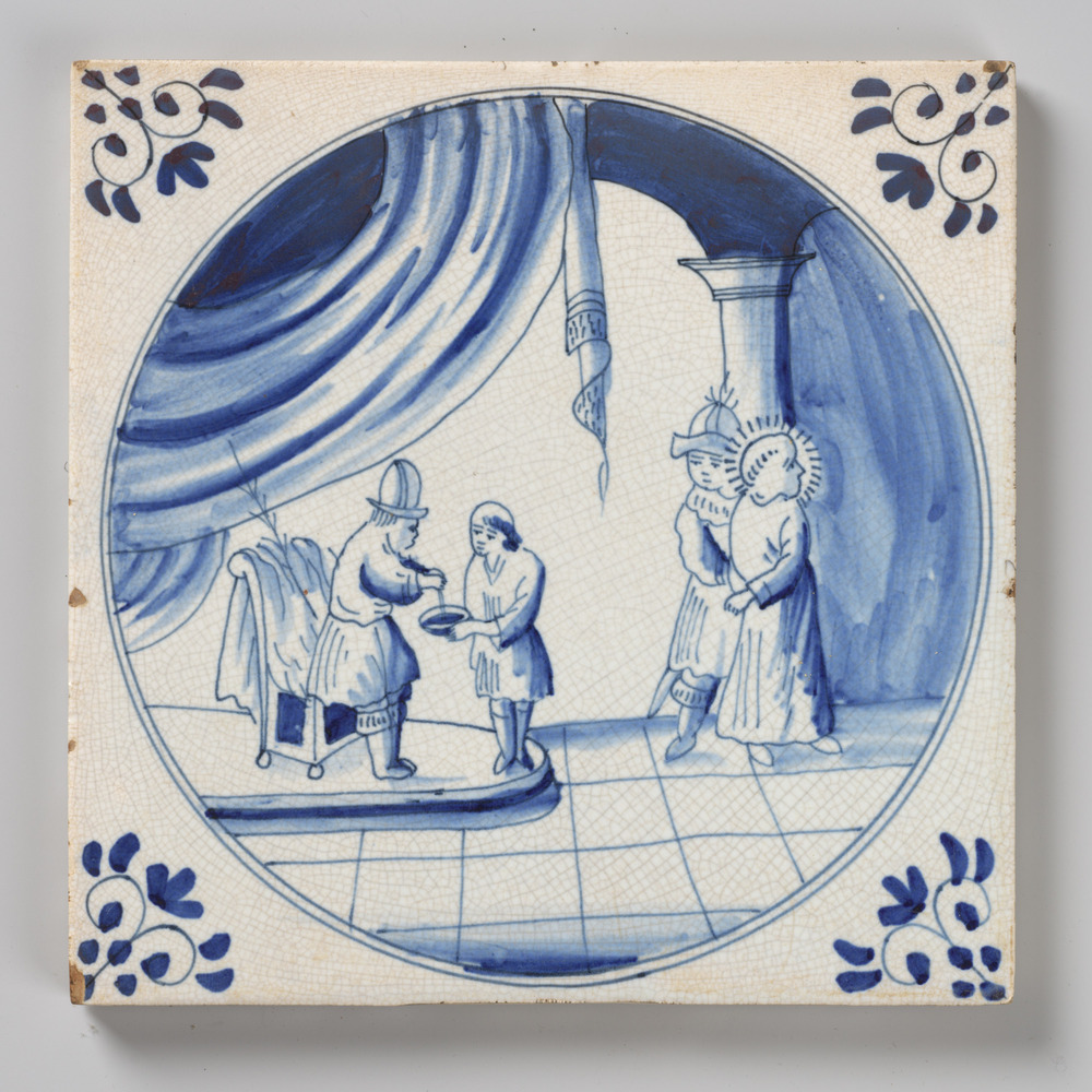 tegel van keramiek met tinglazuur, voorstellende: Lo...