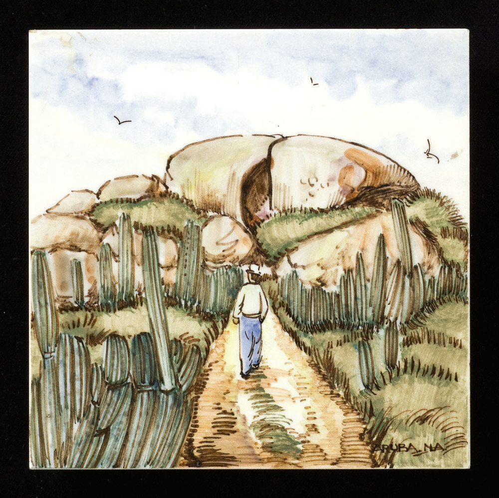 tegeltableau van keramiek in onderglazuur, voorstell...